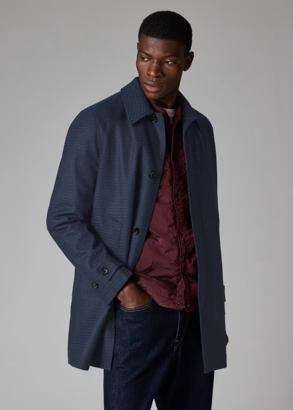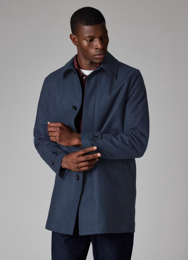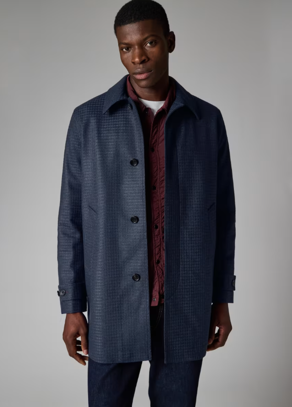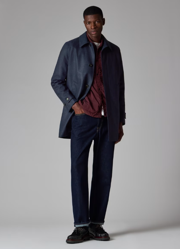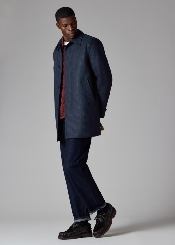 Paul Smith Cappotto a quadri in misto lana blu scuro Realizzato in morbido misto lana riciclata, questo cappotto blu navy presenta un delicato motivo a quadri. Con bottoni tono su tono e cuciture a contrasto, questo cappotto di peso medio è ideale per le mezze stagioni. La dimensione La modella indossa una taglia M Misure della modella: Altezza 6’2½” / 189,5 cm | Torace 36½” / 93 cm | Vita 29” / 73,5 cm La vestibilità La vestibilità regolare è rilassata su tutto il corpo Materiale 55% lana riciclata, 34% poliestere, 7% poliuretano, 4% altro Codice prodotto M2R-316Y-T22482-49 Informazioni sulla cura Solo lavaggio a secco Sostenibilità Almeno il 50% dei materiali utilizzati per realizzare questo prodotto ha un impatto ambientale ridotto. Se trovate il nostro logo Sun nei nostri negozi o online, significa che questo prodotto è stato realizzato con materiali a basso impatto ambientale.