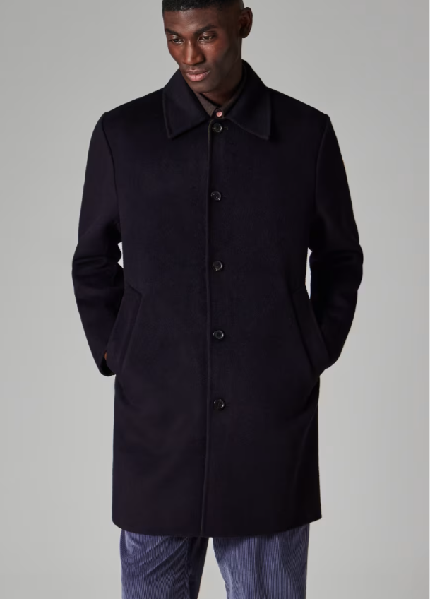 Paul Smith Cappotto in misto lana double-face blu navy Realizzato in un panno misto lana double-face per una finitura più strutturata, questo soprabito blu navy presenta un interno bordeaux a contrasto. Caratterizzato da un design senza tempo, questo cappotto è rifinito con bottoni naturali su tutta la superficie La dimensione La modella indossa una taglia M Misure della modella: Altezza 6,2 ‘/ 187,5 cm | Vita 28’/ 71,5 cm | Torace 35 ‘/ 88,5 cm La vestibilità – Vestibilità regolare Materiale 60% lana, 40% poliestere Prodotto in Cina Codice prodotto M2R-667Z-T22484-49 Informazioni sulla cura Solo lavaggio a secco