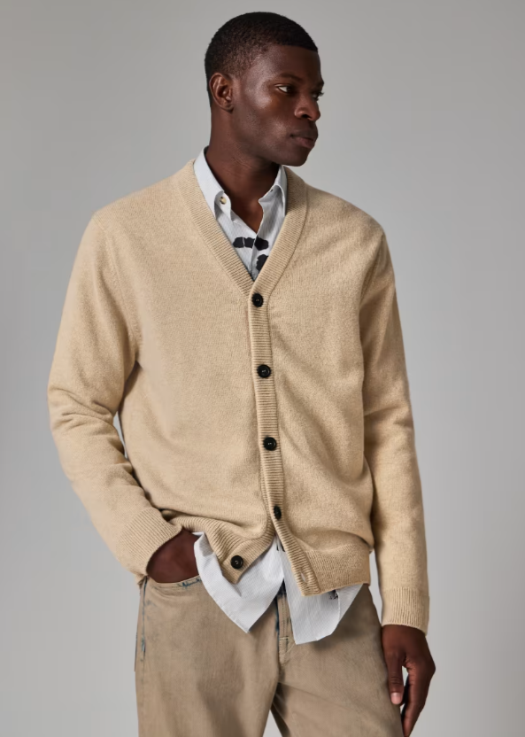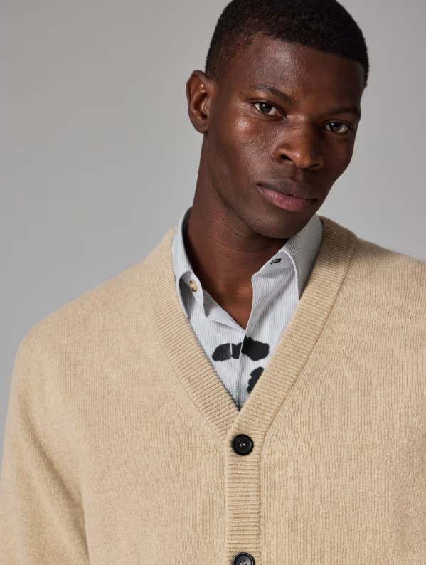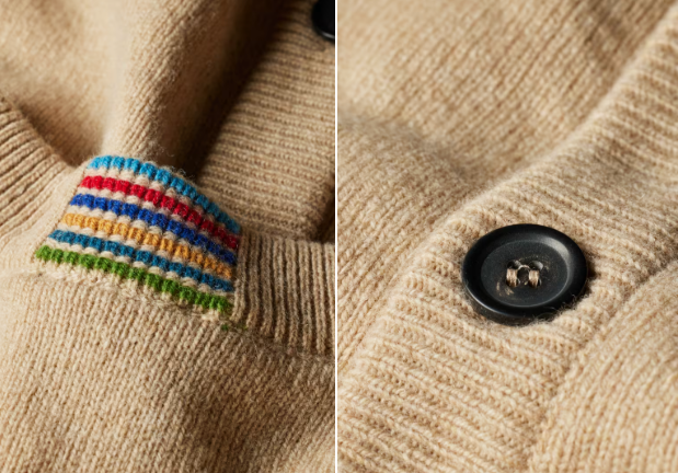 Paul Smith Cardigan in lana merino ecrù Realizzato in Portogallo in lana merino al 100%, questo cardigan écru presenta un classico scollo a V con cinque bottoni. Dal taglio regular, questo cardigan è rifinito con un colletto con motivo ‘Sports Stripe’, per un tocco di colore inconfondibile. La dimensione La modella indossa una taglia M Misure della modella: Altezza 6’2½” / 189,5 cm | Torace 36½” / 93 cm | Vita 29” / 73,5 cm Materiale 100% lana merino Prodotto in Portogallo Codice prodotto M2R-488Z-T22514-07 Informazioni sulla cura Lavaggio a mano