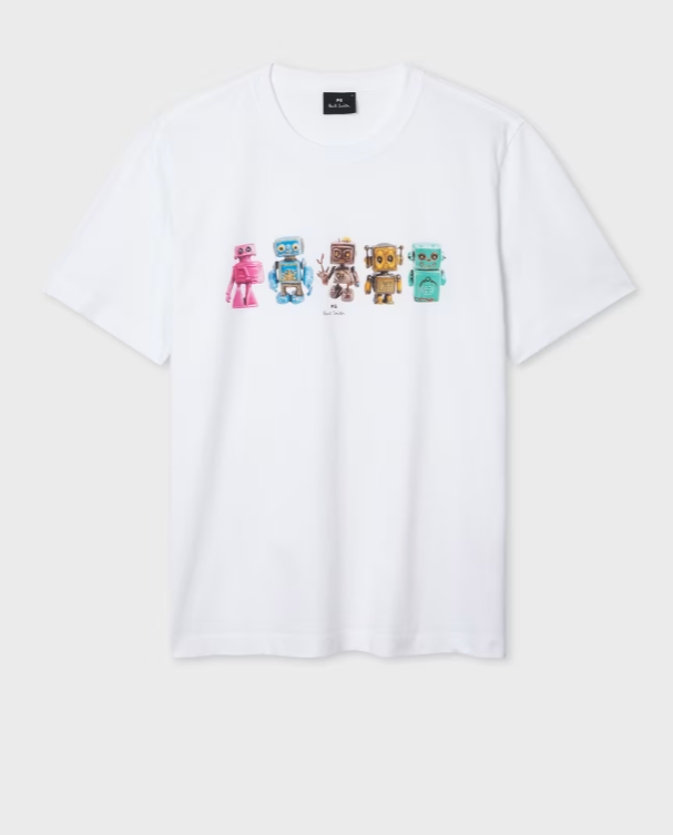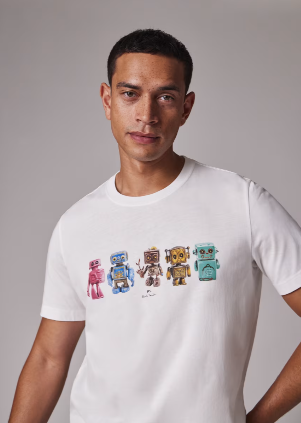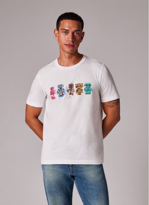 Paul Smith Maglietta bianca ‘Robots’ Realizzata in morbido cotone biologico, questa t-shirt presenta un divertente motivo ‘Robots’. Completa di classico scollo rotondo e maniche corte, questa t-shirt è ideale per uno stile quotidiano e comodo.La dimensione La modella indossa una taglia M Misure della modella: Altezza 6,1 ‘/ 185 cm | Torace 38′ / 96 cm | Vita 31,5’ / 80 cm La vestibilità La vestibilità regolare è rilassata su tutto il corpo Materiale 100% cotone biologico Prodotto in Cina Codice prodotto M2R-011R-TP5414-01 Informazioni sulla cura Lavabile in lavatrice Sostenibilità Almeno il 50% dei materiali utilizzati per realizzare questo prodotto ha un impatto ambientale ridotto. Se trovate il nostro logo Sun nei nostri negozi o online, significa che questo prodotto è stato realizzato con materiali a basso impatto ambientale.