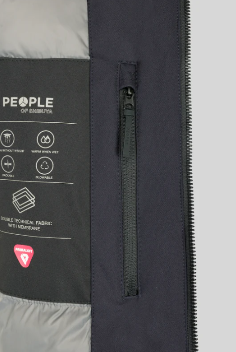 People of Shibuya Bomber imbottito con cappuccio blu ANEDA PM981 790 BOMBER TECNICO BLU Descrizione Giubbino in tessuto tecnico tre strati con membrana con cappuccio con coulisse. Interno libero trapuntato in isolante termico tecnico “PRIMALOFT”. Zip pressofusa doppio cursore con tiretto personalizzato. Parazip in tessuto principale con aeratori tagliati al laser. Tasche esterne con pattina e bottone a pressione nascosto con calamita Tasche interne nastrate portadocumenti e portacellulare con zip. Badge brand su manica sinistra. Etichetta in gomma sulla manica destra con coordinate geografiche relative allo Shibuya Crossing. Composizione: 87% poliammide, 13% elastan.