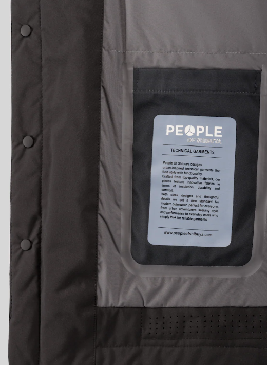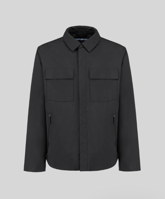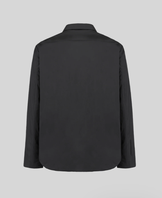 People of shibuya Over shirt in tessuto tecnico nero Descrizione Camicia in tessuto tecnico con isolante termico interno “FELLEX” 100% riciclato. Chiusura con bottoni a pressione nascosti. Primo bottone alto a pressione personalizzato effetto gomma. Tasche anteriori basse tagliate al laser con zip. Tasche anteriori superiori a pattina con bottone a pressione nascosto. Tasca interna portadocumenti e portacellulare termonastrata. Badge brand su manica sinistra. Etichetta in gomma sulla manica destra con coordinate geografiche relative allo Shibuya Crossing. Composizione: 100% poliestere.