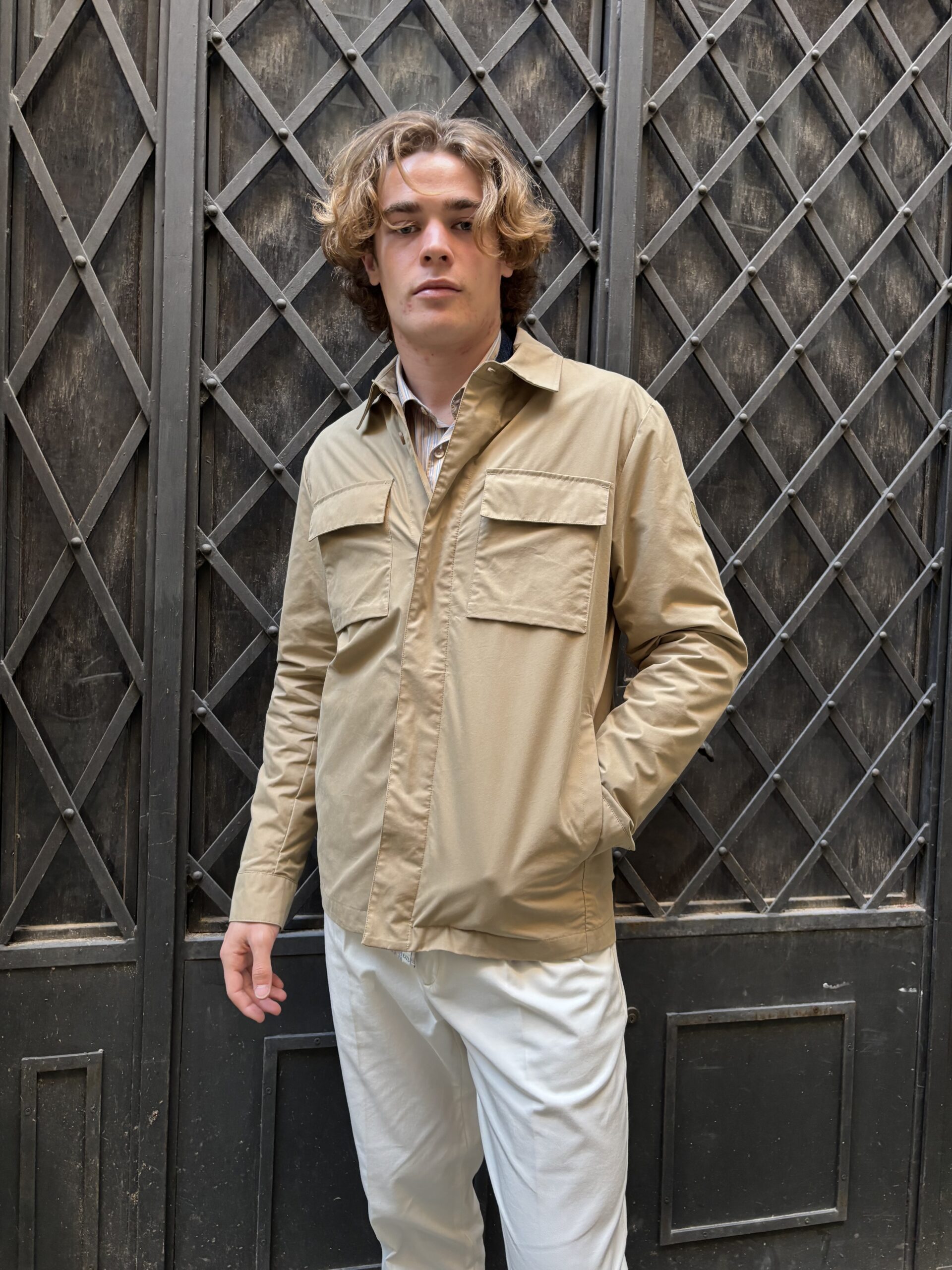 People of shibuya overshirt ”kanazawa” sabbia Overshirt realizzata in tessuto cotone-nylon dal carattere tecnico e contemporaneo. Lo spallone interno in laser cut fabric termonastrato e le termonastrature sulle cuciture interne garantiscono pulizia costruttiva e resistenza. Chiusura frontale con bottoni ad asola opachi e bottoni coordinati ai polsi. Il design funzionale è completato da tasche inferiori a filetto, tasche superiori applicate con pattina e una pratica tasca interna termonastrata porta documenti e portacellulare. Dettagli distintivi come il badge brand sulla manica sinistra e la rubber label sulla manica destra con coordinate geografiche ispirate allo Shibuya Crossing definiscono l’identità del capo. Descrizione Overshirt in tessuto cotone nylon. Spallone interno in laser cut fabric termonastrato. Chiusura con bottoni ad asola opachi. Bottoni ad asola ai polsi. Termonastrature su cuciture interne. Tasche esterne inferiori a filetto. Tasche esterne superiori applicate con pattina. Tasca interna termonastrata portadocumenti e portacellulare. Badge brand su manica sinistra. Rubber label su manica destra con coordinate geografiche relative allo Shibuya Crossing. KANAZAWA PM961 060 OVERSHIRT SAFARI Composizione e cura Composizione: 70% cotone 30% poliammide Cura: Tutte le informazioni su lavaggio e manutenzione sono disponibili sull’etichetta interna del capo.