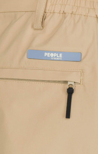 People of Shibuya pantalone KOBRA sabbia Pantalone in tessuto tecnico giapponese bi-stretch, dalla mano morbida e rotonda, naturalmente anti-piega. La vita con fianchi elasticizzati, passanti e coulisse interna garantisce una vestibilità perfetta, completata da bottone a gancio personalizzato. Patta con zip e dettaglio interno con rubber label recante le coordinate dello Shibuya Crossing. Linea valorizzata da pince frontali e tasche america, con fodera delle tasche anteriori in tessuto laser cut per traspirabilità e comfort. Tasca posteriore con zip e puller personalizzato, rifinita con una mappa interna di Shibuya. Logo gommato sul retro per un tocco distintivo e contemporaneo. Descrizione Pantalone in tessuto tecnico giapponese dalla mano morbida e rotonda bi-stretch anti-piega. Cintura in vita con fianchi elasticizzati e passanti, bottone a gancio personalizzato, coulisse interna. Finta interna con zip, patta con rubber label con coordinate geografiche relative allo Shibuya Crossing. Pince. Tasche america. Fodera tasche anteriori in tessuto laser cut. Tasca posteriore con chiusura zip e zip puller personalizzato. Fodera tasca posteriore con Shibuya map. Logo gommato posteriore. Composizione e cura Composizione: 100% Poliestere Cura: Tutte le informazioni su lavaggio e manutenzione sono disponibili sull’etichetta interna del capo.