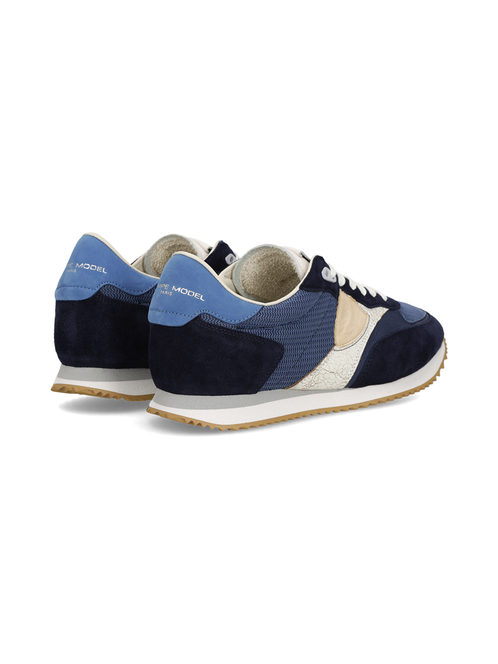 Philippe Model Sneakers Blville Uomo, Blu, oceano e Bianco Descrizione Blville reinterpreta con carattere una delle silhouette più iconiche dell’archivio, trasformandola in una sneaker da indossare ogni giorno. Non solo una scarpa, ma un’espressione di stile personale. Le linee essenziali incontrano materiali selezionati per offrire comfort e autenticità senza tempo. In questa versione, suede e pelle mondial nei toni del nero si alternano a dettagli bianchi in pelle liscia e craquelé, creando un gioco di texture sofisticato. Una sneaker che unisce tradizione e identità, pensata per raccontare la tua storia con originalità. Dettagli e composizione Materiali: Sneaker running bassa con tomaia in tessuto tecnico mesh e suede ed inserti in pelle e pelle invecchiata effetto craquelè. Scudetto laterale cucito. Fodera in spugna di cotone e pelle con soletta imbottita estraibile. Fondo in gomma microporosa ultraleggera e bicolore. Composizione: 80% CALF LEATHER – 20% TEXTILE Suola: 3 CM Cura del prodotto lavaggio Pulisci le calzature con un panno morbido oppure con una spazzola a setole morbide: evita di usare sostanze abrasive. Philippe Model Paris raccomanda di non lavare le calzature né a mano né in lavatrice, per evitare danneggiamenti non ripristinabili né rimborsabili. Si consiglia di utilizzare sempre un calzascarpe per indossare le sneaker. Le calzature vanno indossate sempre da slacciate onde evitare l’usura e preservare la forma del tallone e della tomaia. Per mantenere le proprietà originali di queste scarpe, consigliamo di farne un uso attento. Philippe Model crea articoli unici utilizzando pelli e materiali naturali di alta qualità. Si prega di notare che eventuali segni e variazioni di colore o grana non sono da considerarsi difetti, ma caratteristiche naturali. Philippe Model utilizza occasionalmente diverse tecniche di colorazione, incisione o stampa sulla pelle in cui le differenze di colore o definizione sono inerenti ai processi tecnici. Per preservare le qualità delle tue scarpe Philippe Model evita l’esposizione diretta a fonti di luce e calore e conservale in un luogo asciutto e ben ventilato. Riponile nei sacchetti di cotone in dotazione e riempile con carta velina per contribuire a mantenere la forma. Evita il contatto con acqua, profumi, oli, cosmetici e prodotti abrasivi. Se le scarpe si bagnano, asciugale con un panno morbido senza sfregare e lasciale asciugare a temperatura ambiente e lontano da fonti di calore. Dai un’occhiata al nostro kit trovi tutto l’occorrente per far sì che le tue sneaker Philippe Model durino a lungo. Basta un po’ di cura e di amore. BVLU W004 BLVILLE LOW BLU