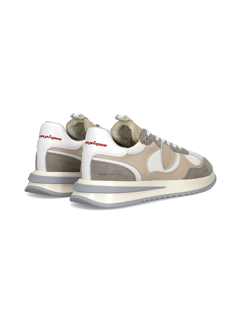 Philippe Model Sneakers Olympique Uomo, Bianco Grigio Beige Descrizione Olympique celebra il mondo dell’atletica reinterpretando la sneaker sporty in chiave urbana e contemporanea. Questa scarpa combina stile e performance, grazie alla nostra iconica suola tridimensionale, leggera e flessibile, progettata per accompagnarti con comfort in ogni passo. La tomaia bianca in mesh ricamato con effetto imbottito è arricchita da dettagli in suede grigio e beige che ne valorizzano il design. Olympique è la sneaker ideale per chi cerca un equilibrio perfetto tra heritage sportivo e stile metropolitano. Dettagli e composizione Materiali: Sneaker in mesh imbottito con dettagli in suede e pelle liscia. Costruzione Strobel con fussbett interno estraibile, fodera in pelle spugna di cotone. Suola in gomma microporosa leggera flessibile con inserto tridimensionale sotto il tallone. Composizione: 80% CALF LEATHER – 20% TEXTILE Suola: 3.5 CM Cura del prodotto lavaggio Pulisci le calzature con un panno morbido oppure con una spazzola a setole morbide: evita di usare sostanze abrasive. Philippe Model Paris raccomanda di non lavare le calzature né a mano né in lavatrice, per evitare danneggiamenti non ripristinabili né rimborsabili. Si consiglia di utilizzare sempre un calzascarpe per indossare le sneaker. Le calzature vanno indossate sempre da slacciate onde evitare l’usura e preservare la forma del tallone e della tomaia. Per mantenere le proprietà originali di queste scarpe, consigliamo di farne un uso attento. Philippe Model crea articoli unici utilizzando pelli e materiali naturali di alta qualità. Si prega di notare che eventuali segni e variazioni di colore o grana non sono da considerarsi difetti, ma caratteristiche naturali. Philippe Model utilizza occasionalmente diverse tecniche di colorazione, incisione o stampa sulla pelle in cui le differenze di colore o definizione sono inerenti ai processi tecnici. Per preservare le qualità delle tue scarpe Philippe Model evita l’esposizione diretta a fonti di luce e calore e conservale in un luogo asciutto e ben ventilato. Riponile nei sacchetti di cotone in dotazione e riempile con carta velina per contribuire a mantenere la forma. Evita il contatto con acqua, profumi, oli, cosmetici e prodotti abrasivi. Se le scarpe si bagnano, asciugale con un panno morbido senza sfregare e lasciale asciugare a temperatura ambiente e lontano da fonti di calore. Dai un’occhiata al nostro kit trovi tutto l’occorrente per far sì che le tue sneaker Philippe Model durino a lungo. Basta un po’ di cura e di amore. OYLU TR01 OLYMPIQUE TORTORA