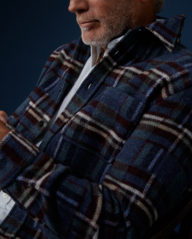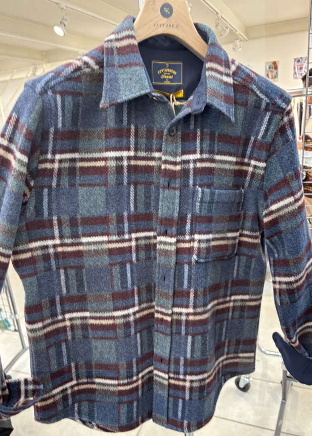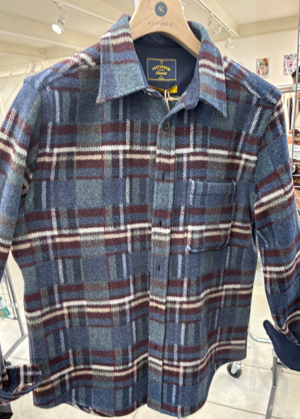 Portuguese Flannel Over shirt in lana quadro blu e bordaux VIRGO II W2 FLANELLA QUADRO BLU Over shirt in lana esterna e imbottita internamente