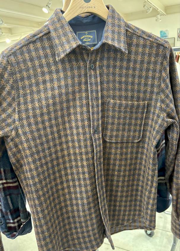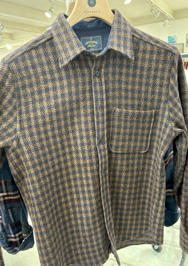 Portuguese Flannel Over shirt in lana tweed blu e testa moro MERINO TWEED MICRO QUADRO BLU Over shrit vestibilità regular