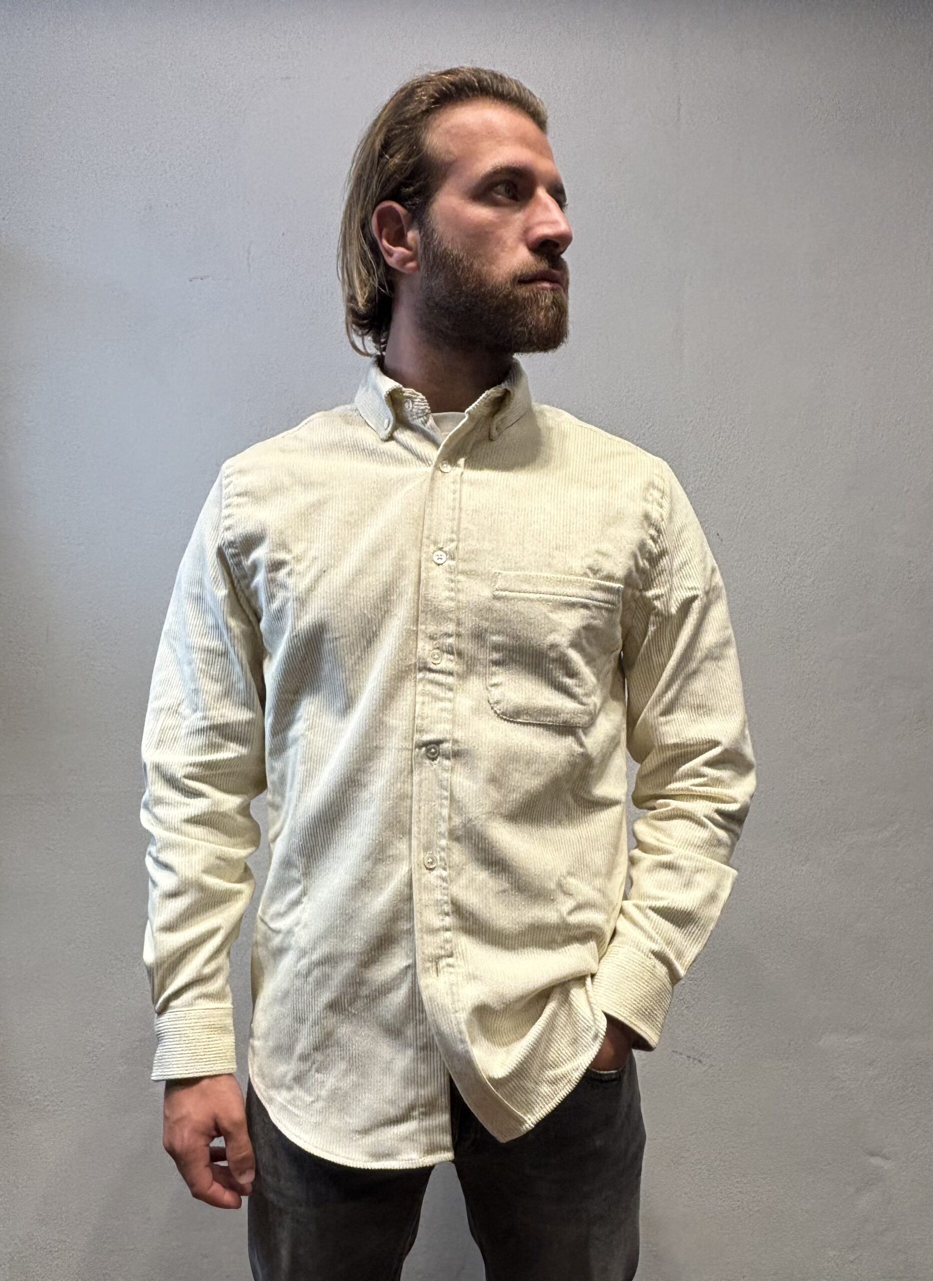 Portuguese Flannel camicia in velluto panna LOBO 2.0 ECRU VELLUTO ECRU Camicia in velluto a coste colore panna con taschino Made in Portogallo Composizione 100% cotone Made in Italy Il modello veste una taglia Media 48 italiana Altezza modello 1,81 peso 78 kg