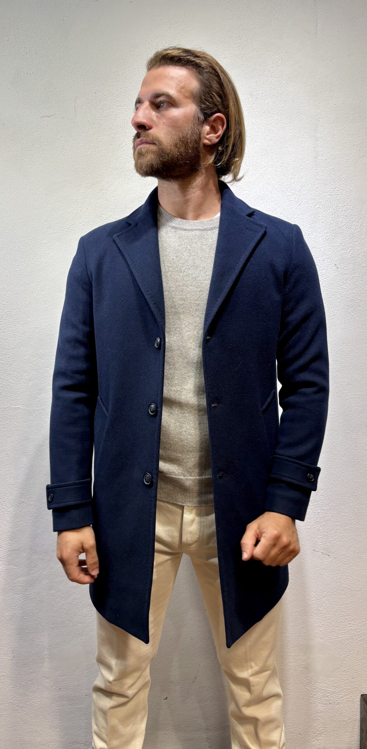 QB24 cappotto monopetto blu 0123283003 B041 BLU CAPPOTTO MISTO BLU Dettagli Parka UOMO Tinta Unita Prodotto in Italia Composizione: 50% Poliestere, 25% Viscosa, 25% Nylon