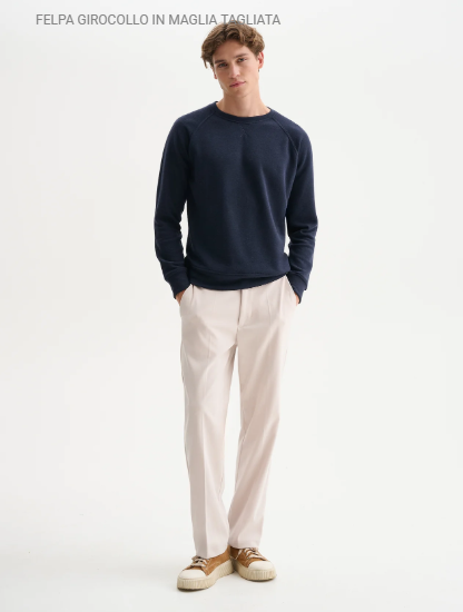 QB24 felpa girocollo in maglia tagliata blu 0123346003 B041 FELPA GIROCOLLO BLU DESCRIZIONE Felpa girocollo in maglia tagliata, con maniche a raglan. Collo, fondo e polsi realizzati con lo stesso materiale del capo. Il modello è alto 188 cm e indossa la taglia L. Il petto misura 96 cm, la vita misura 77 cm, i fianchi misurano 91 cm. VESTIBILITÀ Regular COMPOSIZIONE-LAVAGGIO 80% Poliestere 15% Viscosa 5% Elastan Lavaggio delicato max 30° C