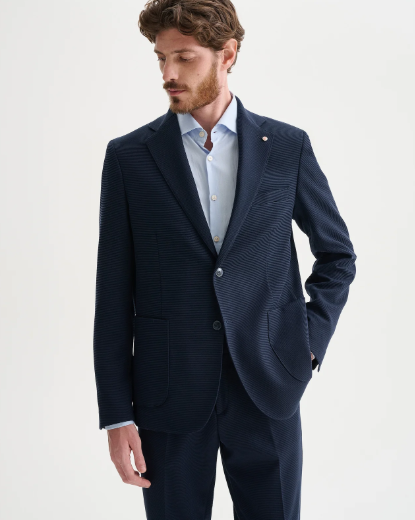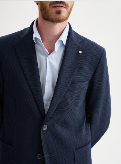 QB24 Giacca in punto milano blu Dettagli Sfiancata MONOPETTO Tinta Unita Prodotto in Italia Composizione: 70% Poliestere, 28% Viscosa, 2% Elastan Stagione: Autunno Inverno 2025