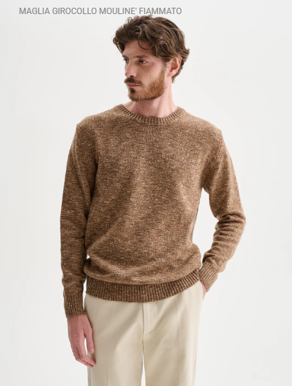 QB24 girocollo melangiato arnacio 0123407003 B418 GIROCOLLO FELINO ARANCIO DESCRIZIONE Maglia girocollo moulinè fiammato. Collo, fondo e polsi a coste. Il modello è alto 185 cm e indossa la taglia L. Il petto misura 95 cm, la vita misura 73 cm, i fianchi misurano 91 cm. Dettagli Girocollo FINEZZA 5 Fantasia_Maschile Prodotto in Italia Composizione: 80% Lana, 20% Poliammide Stagione: Autunno Inverno 2025