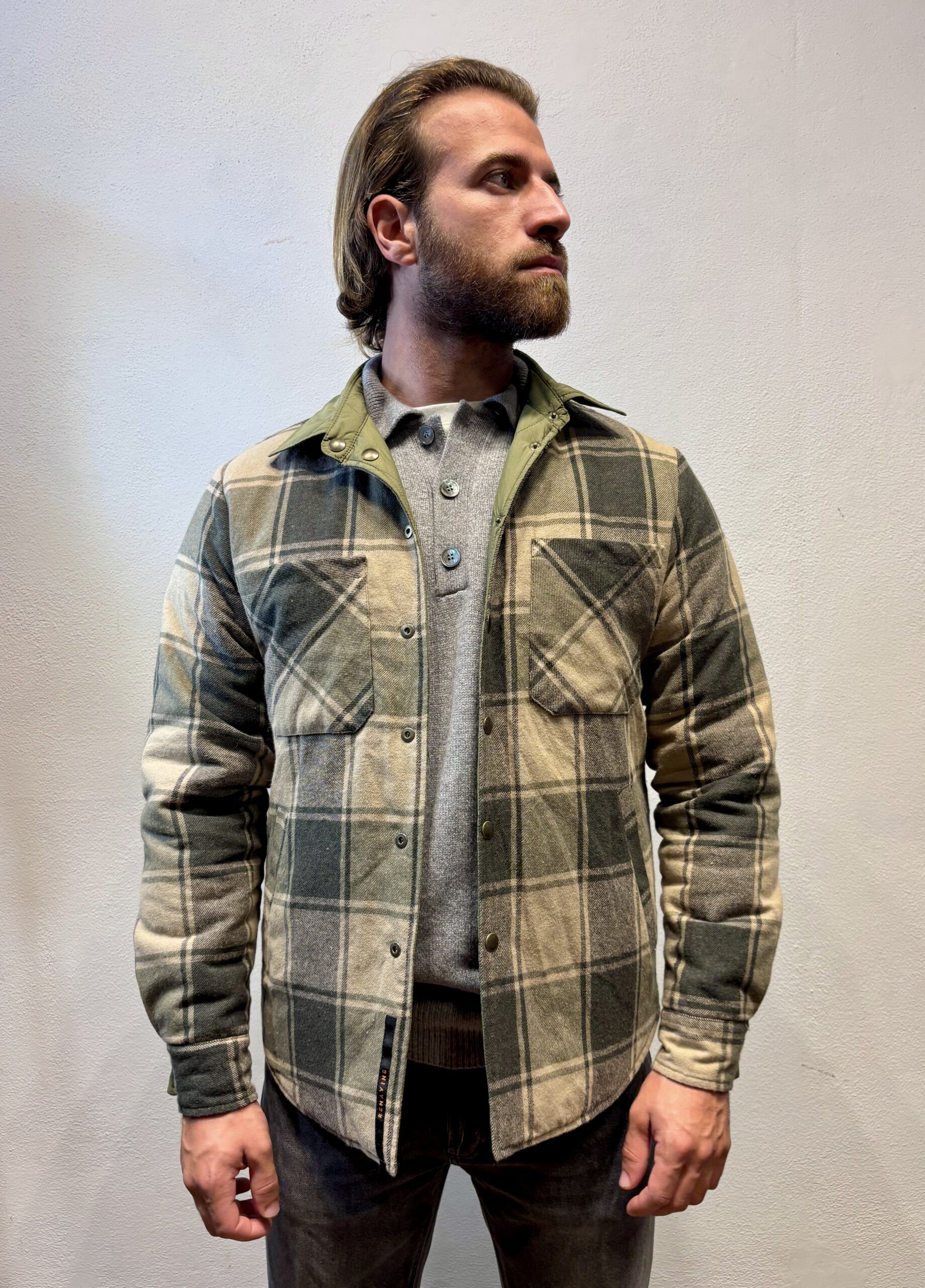 Renavine Overshirt reversibile con bottoni militare HAZEL NYL 12 CAMICIA REVERSIBILE MILITARE Giacca reversibile da un lato nylon dall’altro quadro check in lana. Composizione: esterno 100% nylon – interno 80% cotone 20% poliestere Made in Italy Il modello veste una taglia Media 48 italiana Altezza modello 1,81 peso 78 kg