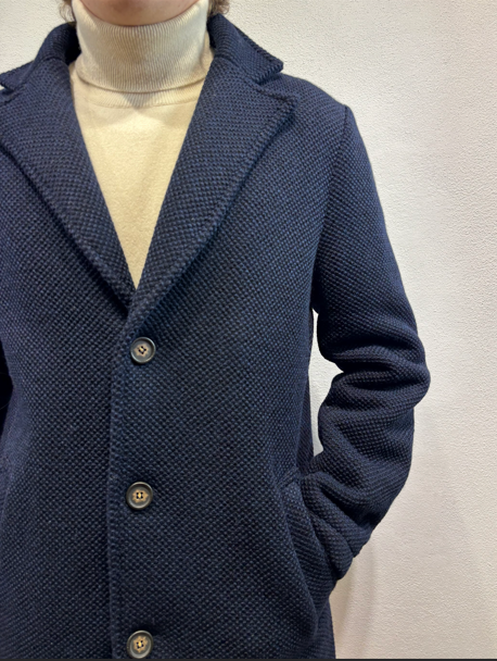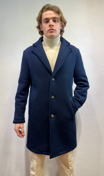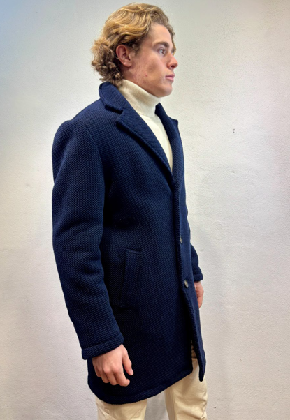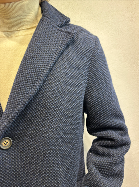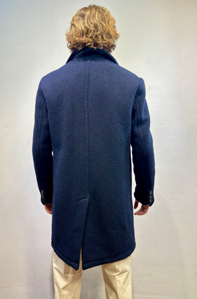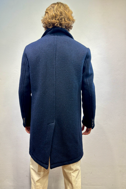 Renavine cappotto monopetto in lana navetta blu