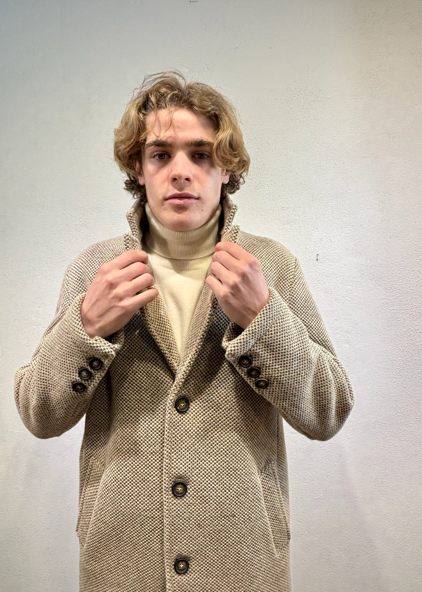 Renavine cappotto in lana navetta imbottito sabbia Capotto monopetto con 3 bottoni con tasche a trench Made in italy a km 0 composizione esterna 60% lana 40% poliestere imbottitura 100 nylon VESTIBILITà SLIM FIR DOT A1 CAPPOTTO SABBIA Il modello veste una taglia 48 Altezza modello 1,85 peso 72 kg