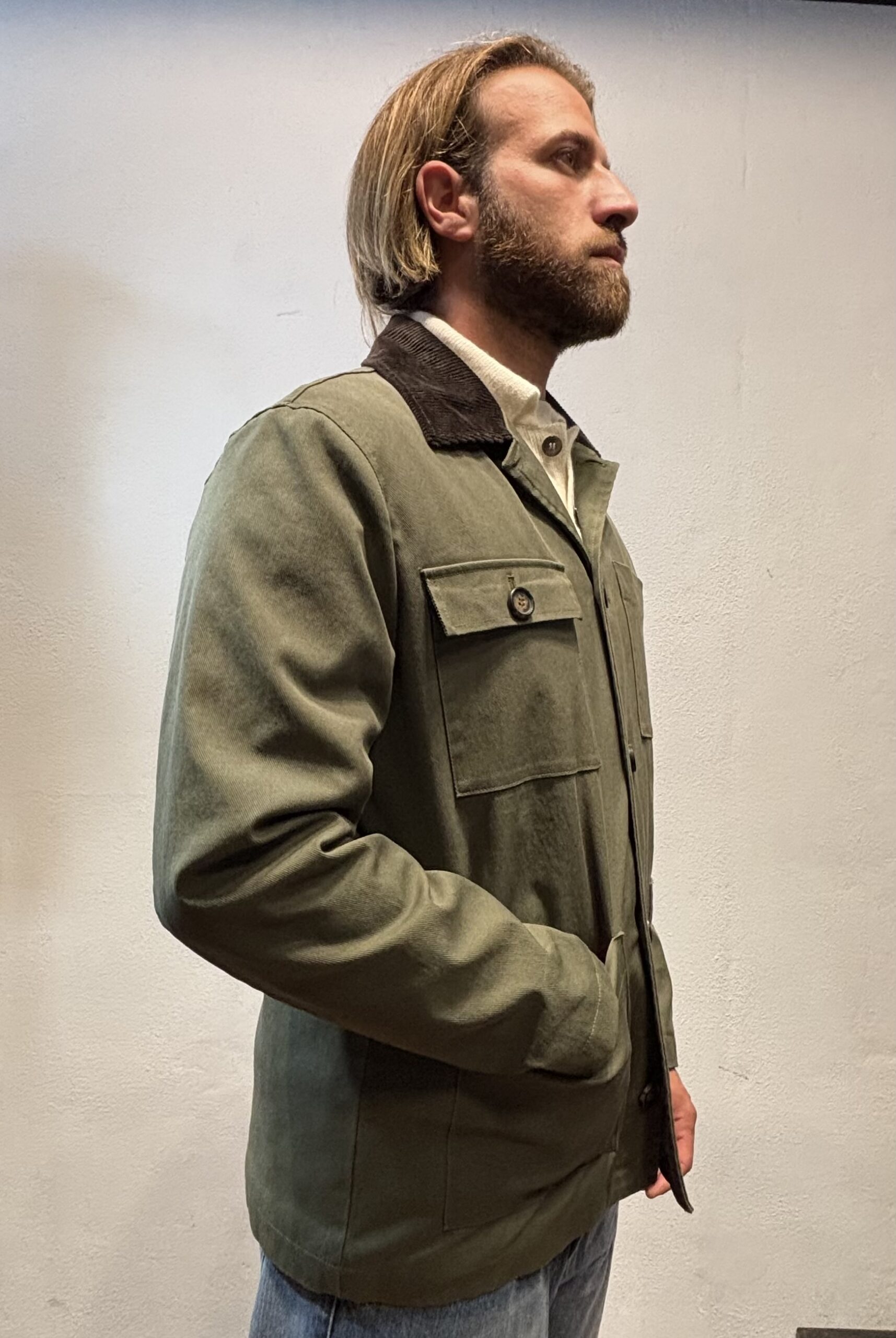 Renavine Giacca in cotone diagonale militare PLANE RES H3 GIACCA COLLO VELL MILIATRE Giacca in cotone diagonale, collo in velluto e imbottita in lana. Capo per l’inverno. Composizione: 57% cotone 40% nylon 3% elastan Made in Italy Il modello veste una taglia Media 48 italiana Altezza modello 1,81 peso 78 kg