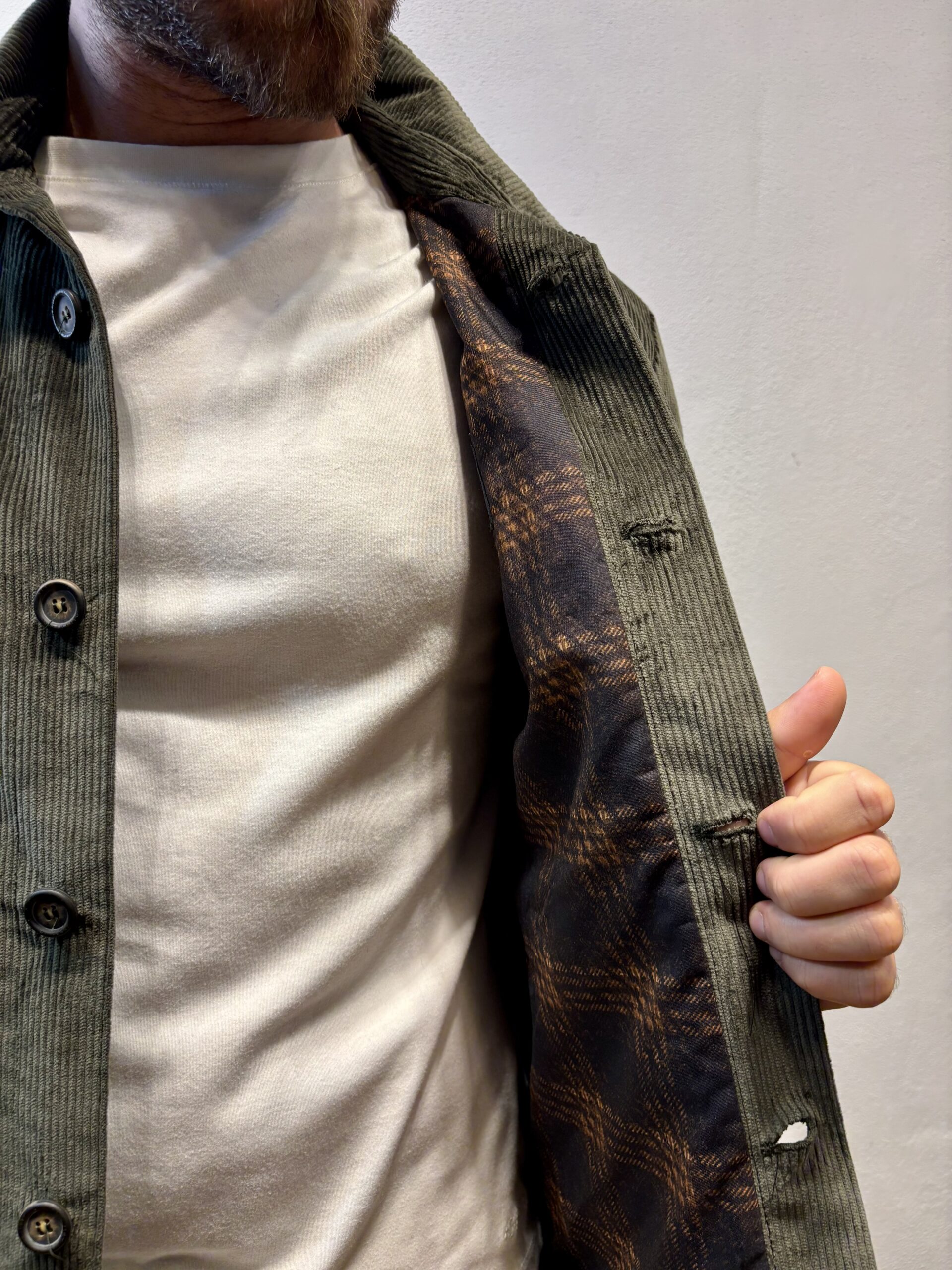 Renavine overshirt in velluto verde militare MAPLE VLT VERDE OVERSHIRT VELLUTO VERDE Over shirt in velluto a coste ecru Vestibilità slim Composizione 100% cotone interno 80% cotone 20% poliestere Made in Italy Il modello veste una taglia Media 48 italiana Altezza modello 1,81 peso 78 kg
