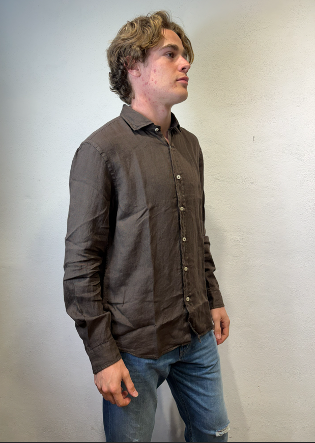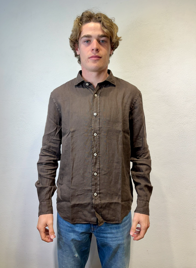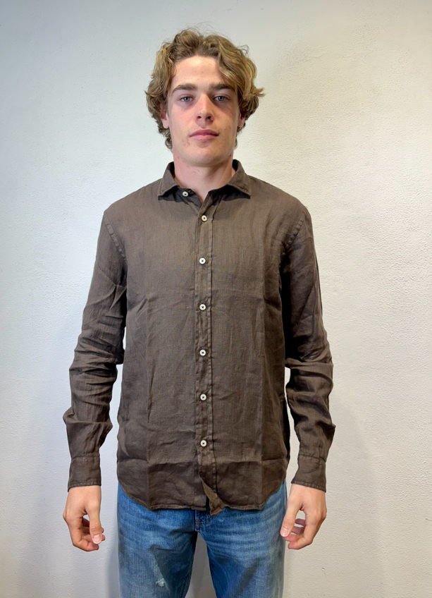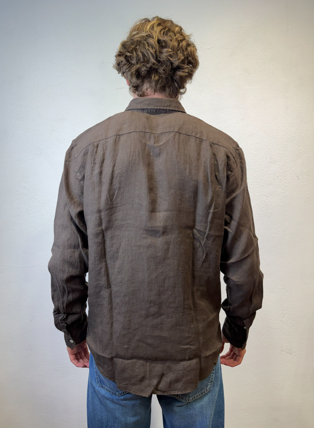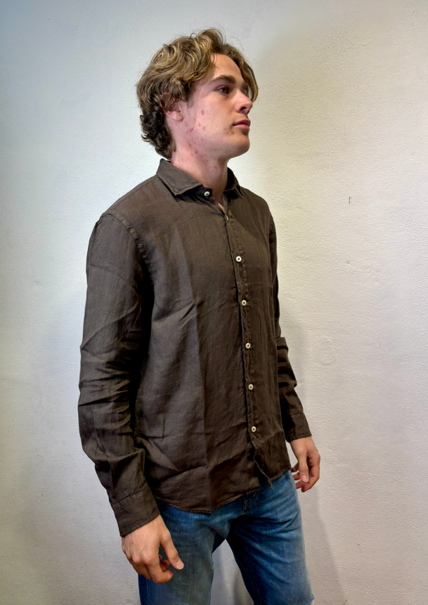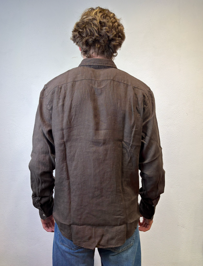 Roy Rogers camicia in lino moro Camicia Pierce in lino dyed tinta unita. Colletto classico. Chiusura con bottoni. Maniche lunghe e polsini con bottoni. Fondo stondato. Regular fit. COMPOSIZIONE: 100% LINO. PIERCE WHITE CAMICIA LINO BIANCO COLORE: MORO CATEGORIA: CAMICIE Il modello è alto 1,86 peso 72 kg Vesta una taglia Media