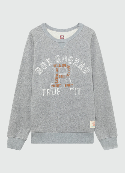 Roy Rogers felpa girocollo grigio con stampa true grit Felpa girocollo in cotone washed tinta unita. Sprone a punta sul collo, tipico dell’abbigliamento sportivo. Maniche lunghe raglan. Collo, fondo e polsini a costine. Stampa True grit sul fronte. Label Roy Roger’s applicata sul fondo di lato. Interno in cotone garzato. Regular fit. COMPOSIZIONE: 100% COTONE. CODICI: RRU90005CP950124 – C0094 COLORE: GRIGIO CATEGORIA: FELPE