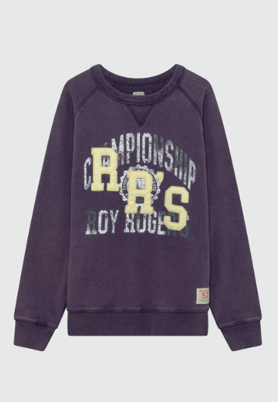Roy Rogers felpa girocollo viola con stampa championship CHAMPIONSHIP VINO FELPA GIROCOLLO VINACCIA Felpa girocollo in cotone stone wash tinta unita. Sprone a punta sul collo, tipico dell’abbigliamento sportivo. Maniche lunghe raglan. Collo, fondo e polsini a costine. Stampa Championship e patch RRS sul fronte. Label Roy Roger’s applicata sul fondo di lato. Interno in cotone garzato. Regular fit. COMPOSIZIONE: 100% COTONE. CODICI: RRU90005CP971770 – C0598 COLORE: VIOLA CATEGORIA: FELPE