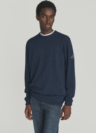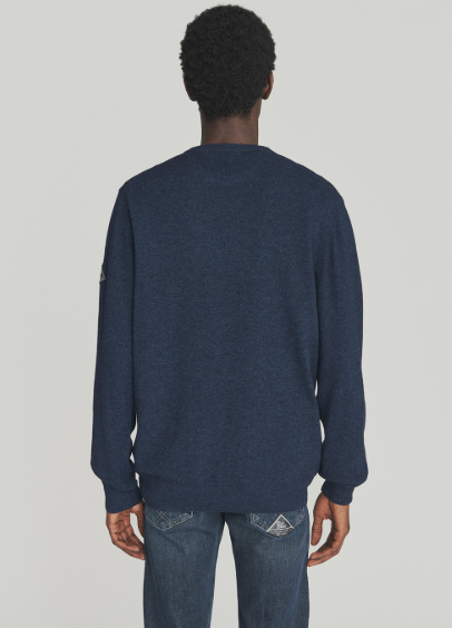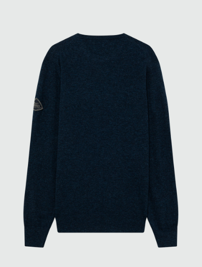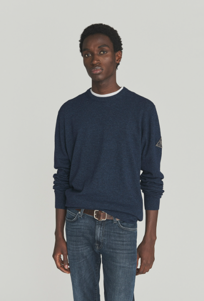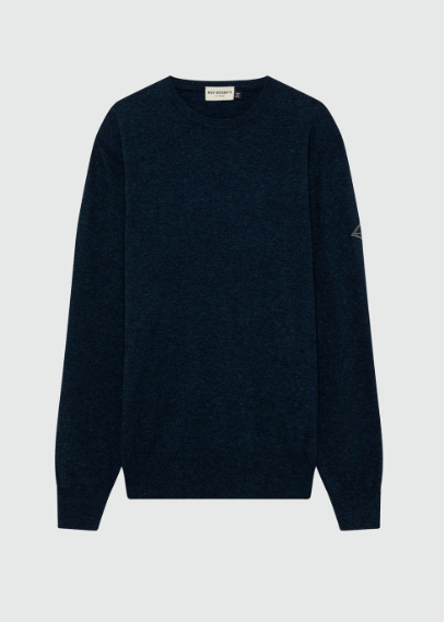 Roy Rogers maglione girocollo in lana e cachemere finezza 12 blu denim Maglia girocollo in lana e cashmere fin. 12 tinta unita. Maniche lunghe raglan. Collo, polsini e fondo a costine. Patch Roy Roger’s in denim applicata su una manica. Regular fit. COMPOSIZIONE: 45% LANA 25% VISCOSA 25% NYLON 5% CASHMERE. Questo prodotto è realizzato in Italia. Il modello è alto 186 cm e indossa la taglia L CODICI: RRU502CC53XXXX – C0999 COLORE: BLU CATEGORIA: MAGLIERIA