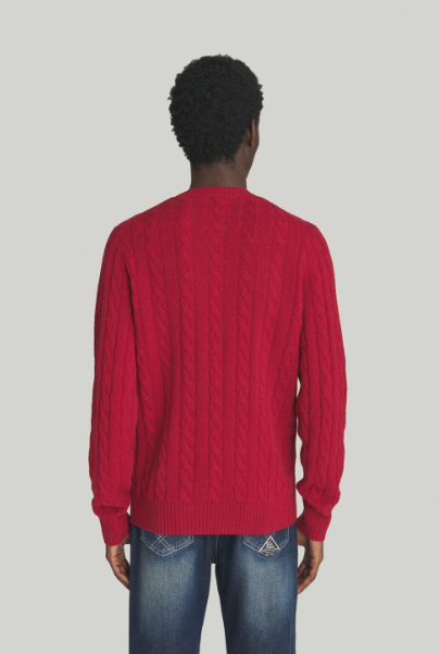 Roy Rogers girocollo trecce in lana e cachemire Rosso Maglia girocollo in lana e cashmere tinta unita con lavorazione cable. Maniche lunghe raglan. Collo, polsini e fondo a costine. Logo Roy Roger’s jacquard sul fondo di lato. Regular fit. COMPOSIZIONE: 90% LANA 10% CASHMERE. CODICI: RRU90289CN97XXXX – C0600 COLORE: ROSSO CATEGORIA: MAGLIERIA
