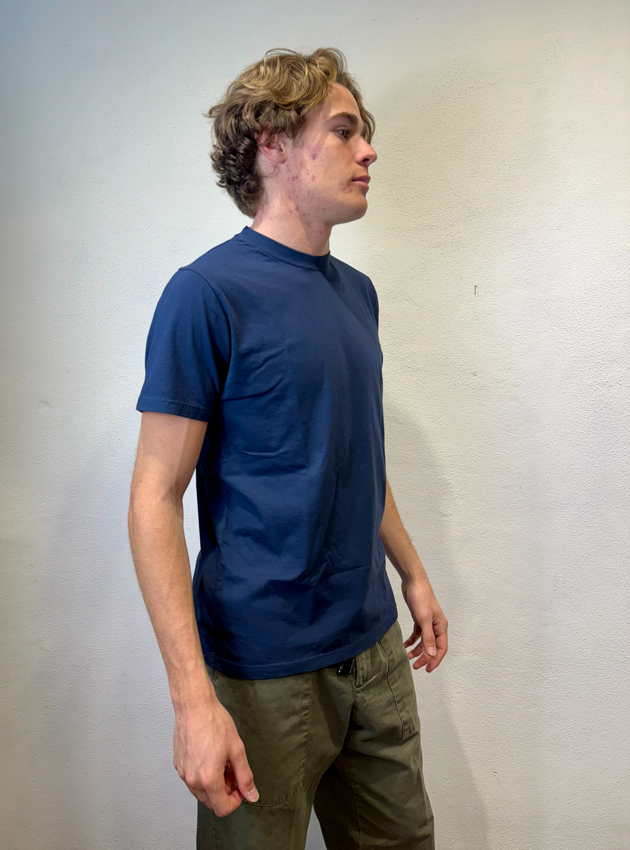 Roy Rogers t-shirt in cotone blu T-SHIRT IN JERSEY T-shirt girocollo in jersey tinta unita. Maniche corte. Micro label Roy Roger’s sul fondo di lato. Regular fit. COMPOSIZIONE: 100% COTONE. CODICI: RRU90049C7480111 – COLORE: BLU CATEGORIA: T-SHIRT E POLO