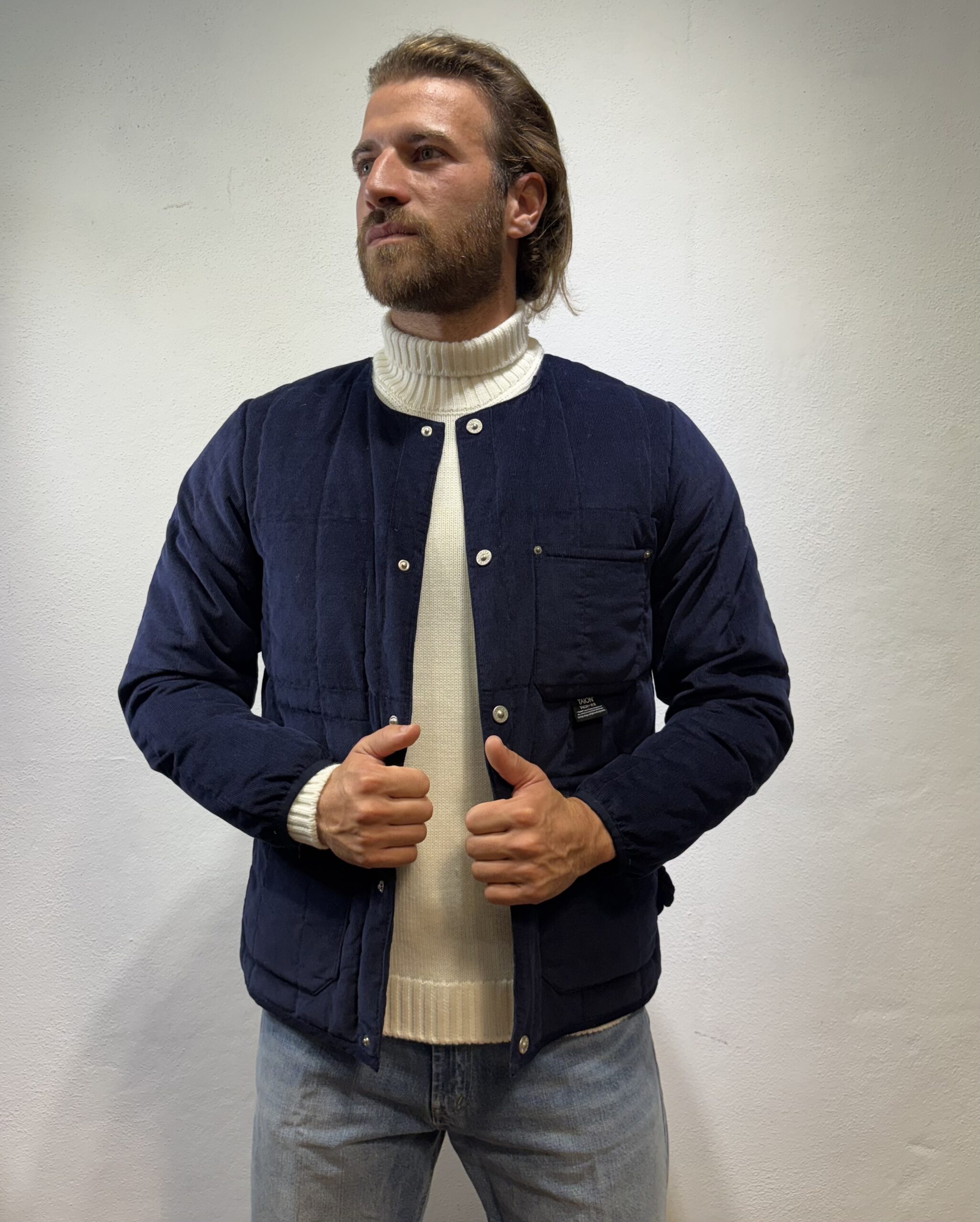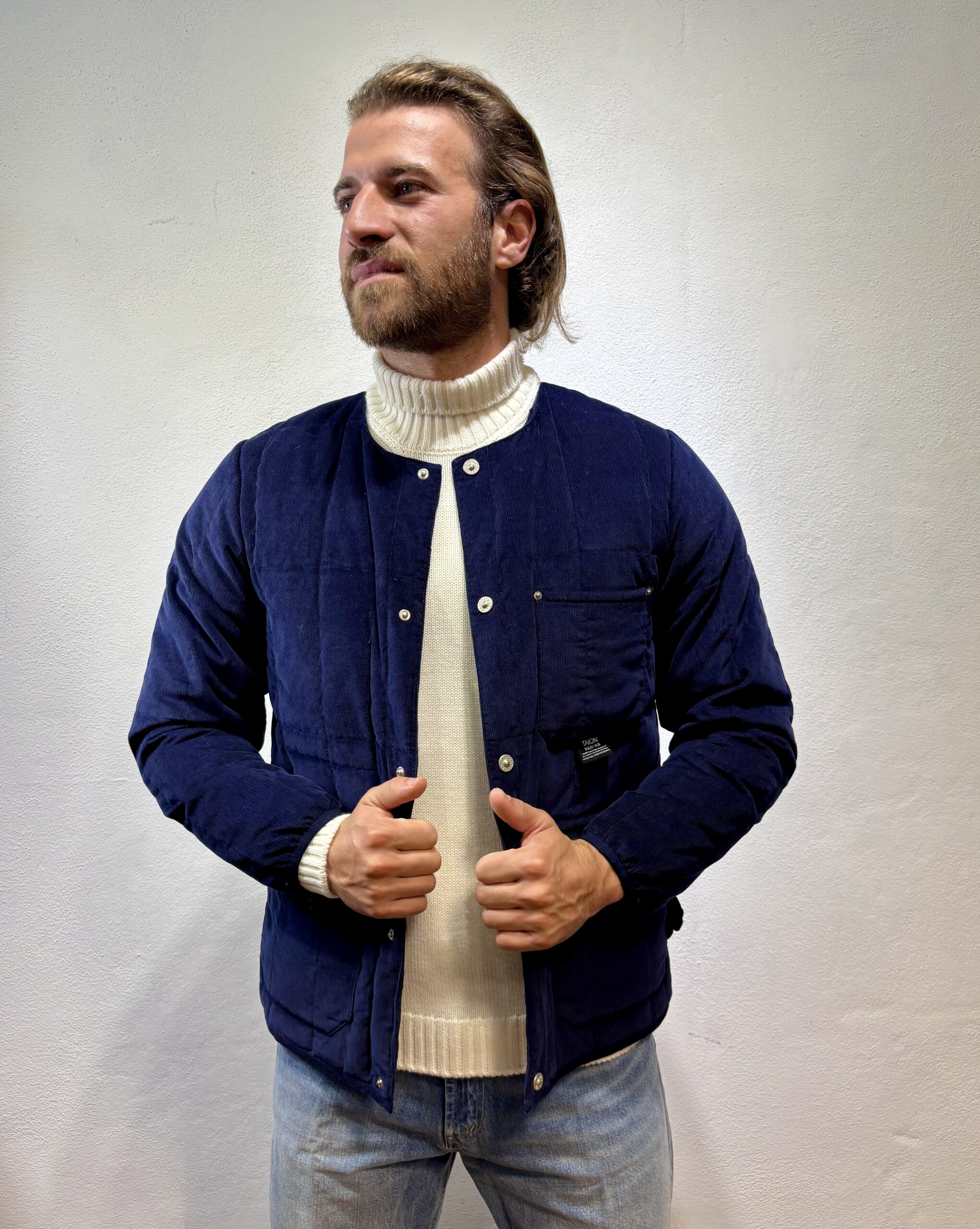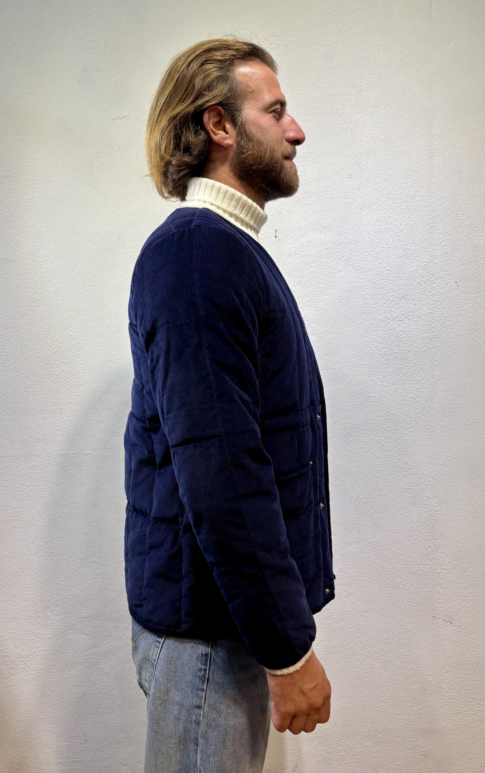 Taion giacca girocollo in velluto blu 104 BWK BLU GIACCA IN VELLUTO BLU Piumino imbottio in velluto girocollo chiusura con bottoni Composizione: imbottitura 95% piumino 5% piuma fodera 100% poliestere, esterno 100% cotone Made in China