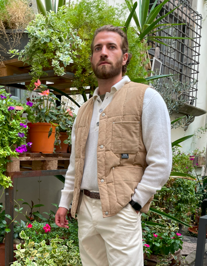 Taion gilet in velluto beige