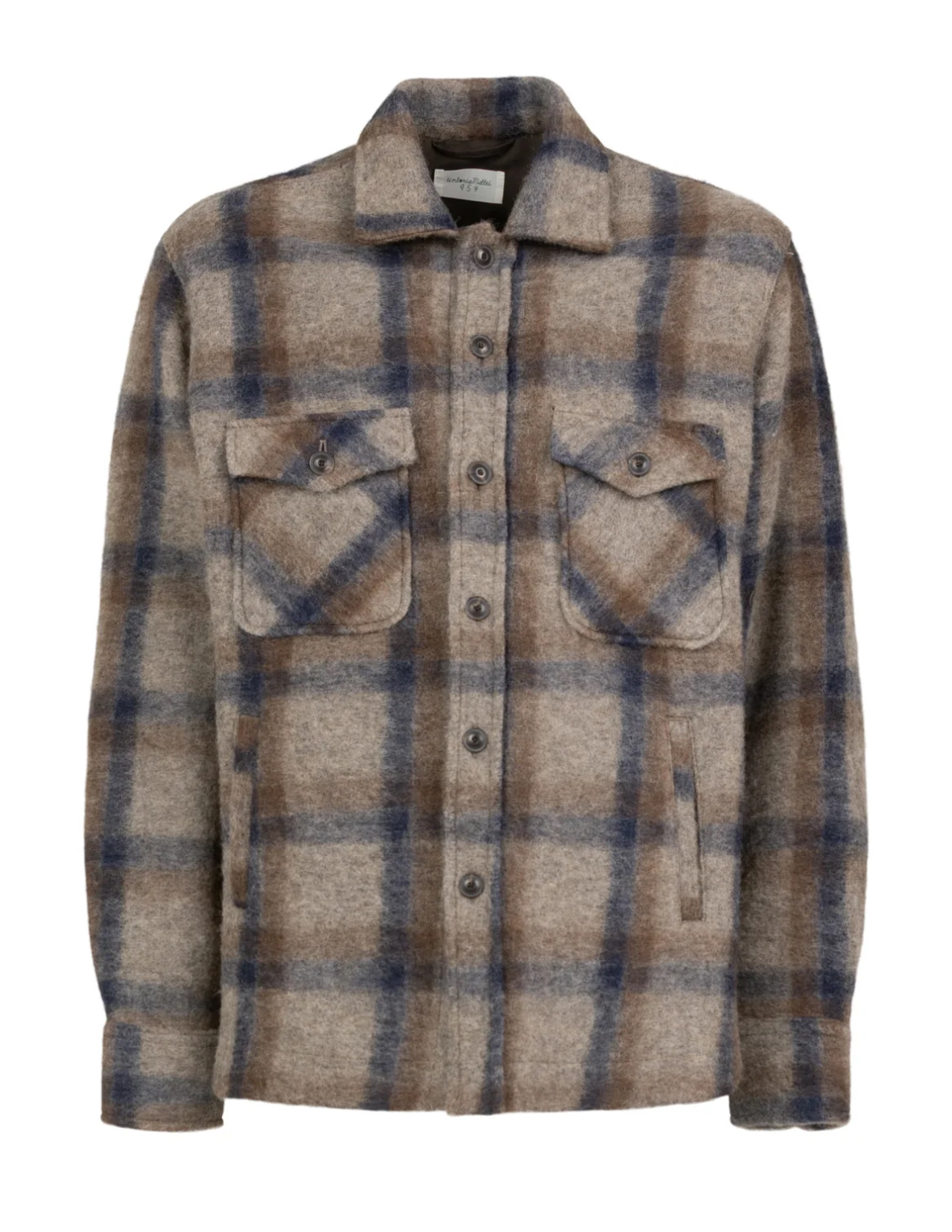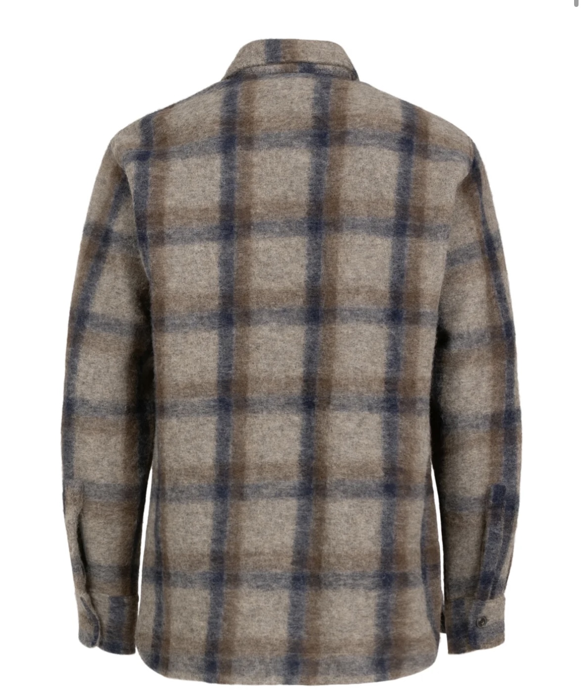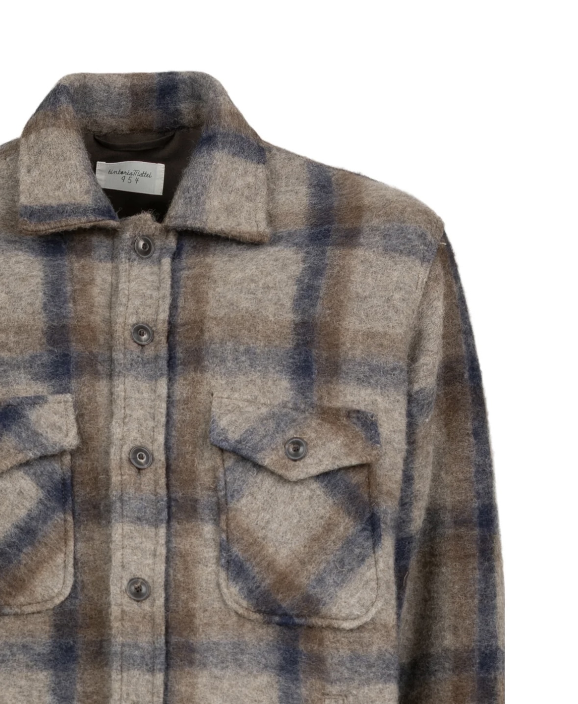 Tintoria Mattei overshirt in lana tortora fantasia quadri
