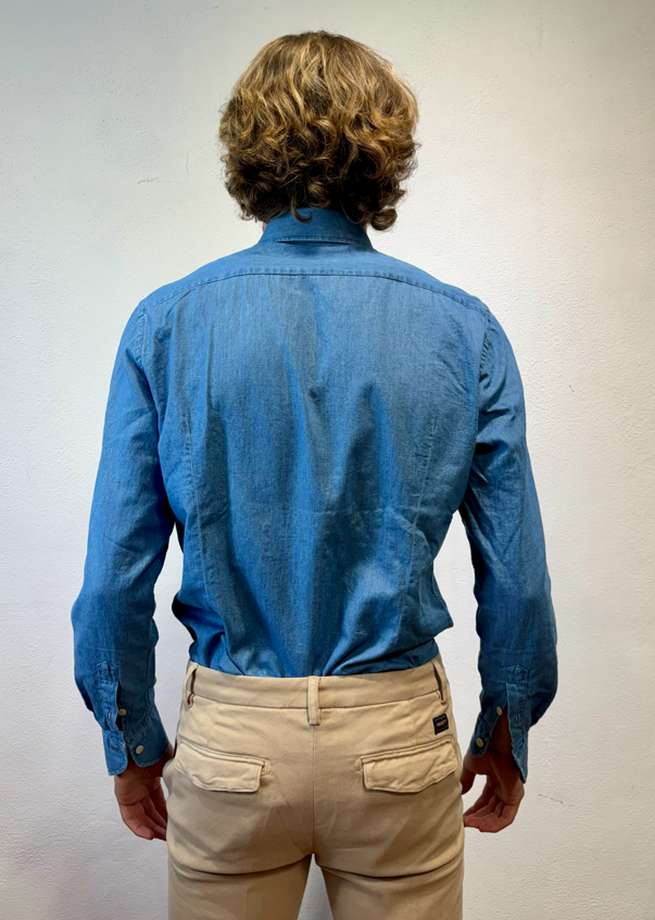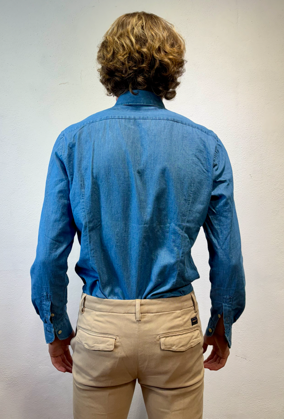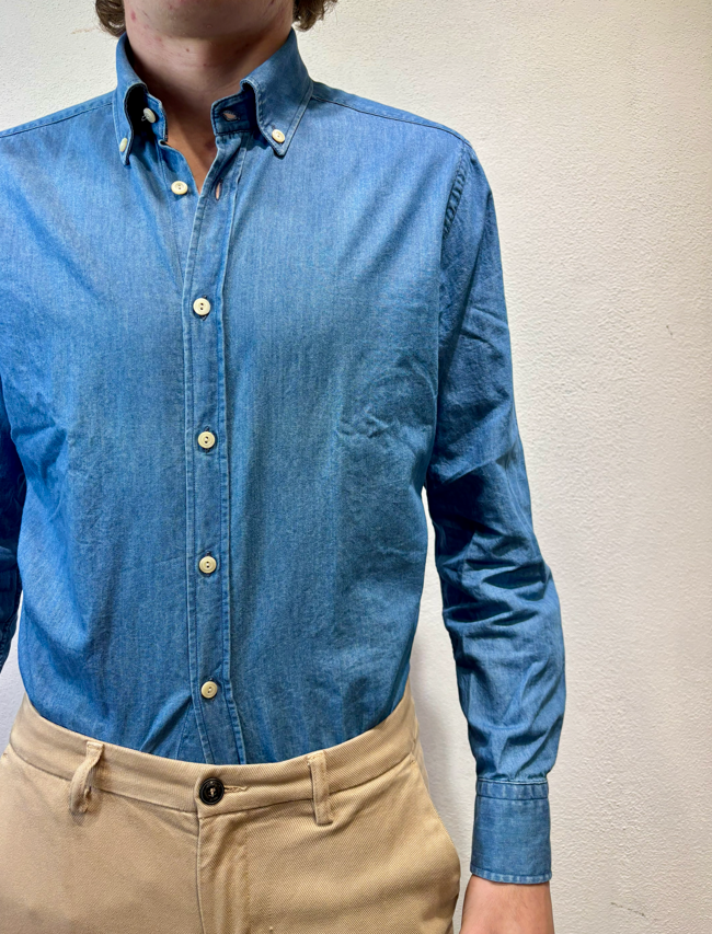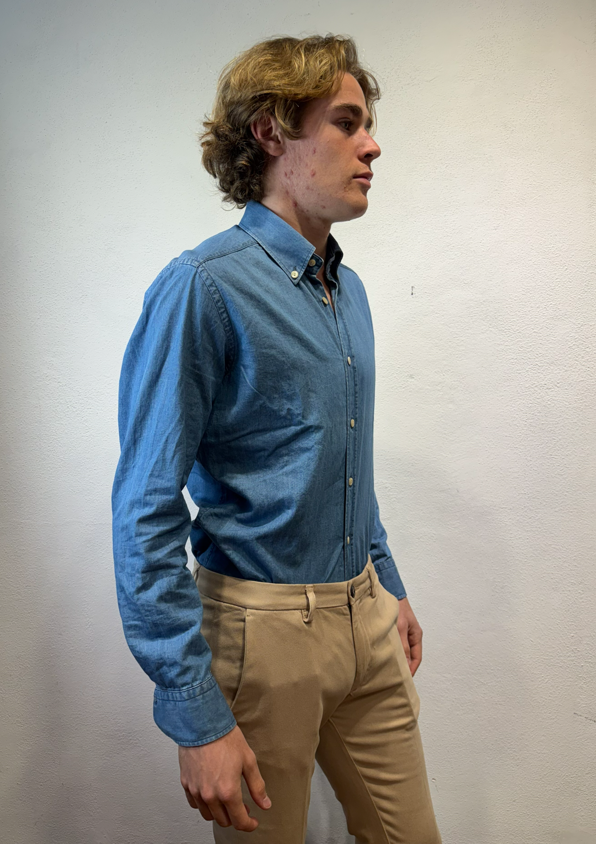 Tintoria Mattei camicia in denim light button down Camicia in denim leggero, lavaggio medio, collo button down con bottni in madreperla. Camicia con pinces Il modello veste una taglia M /48 Altezza Modello 1,85 peso 72 kg Vestibilità regolare RLA NAO UZ2 CAMICIA CHAMBRY DENIM