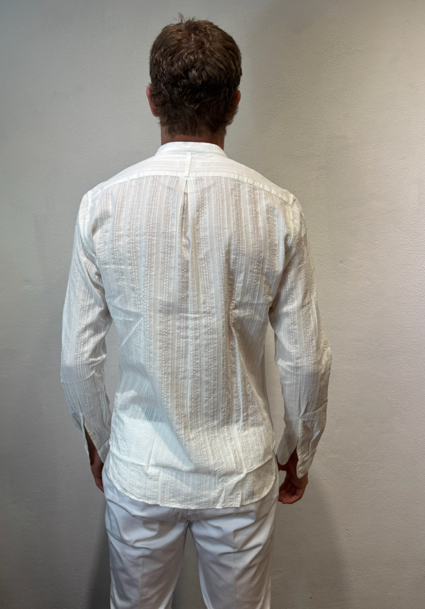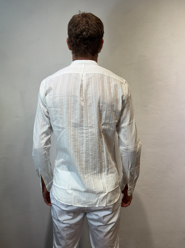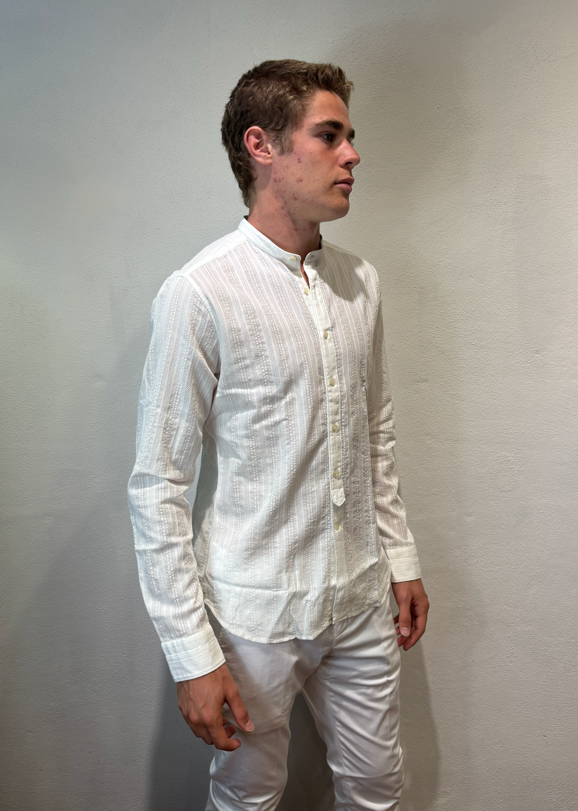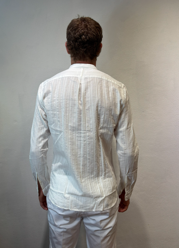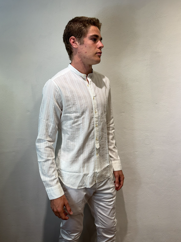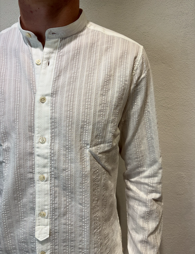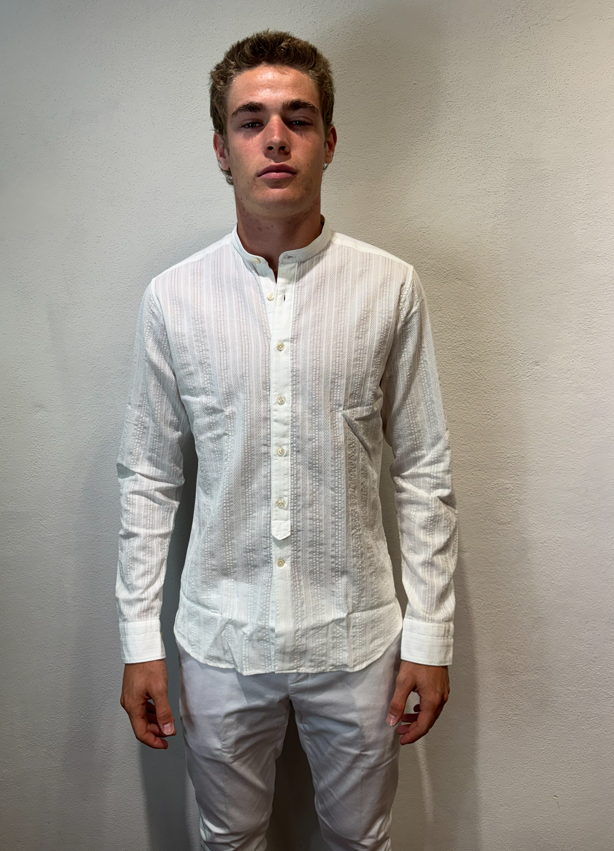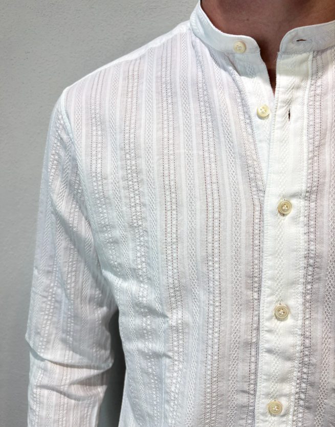 Tintoria Mattei coreana in cotone lavorato bianco Camicia lavorata Vestibilità slim 100% cotone Il modello veste una taglia 39/ M /48 Altezza Modello 1,85 peso 72 kg