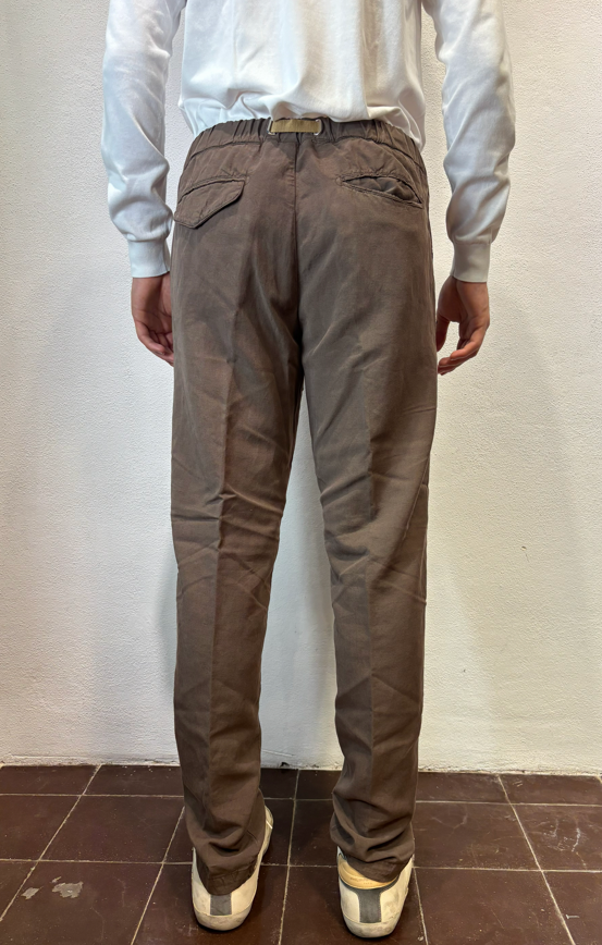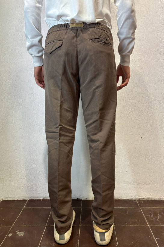 White Sand pantalaccio misto lino color moro DETTAGLI PRODOTTO I pantaloni Greg di White Sand interpretano uno stile rilassato e contemporaneo, perfetto per chi cerca un capo versatile, leggero e raffinato per la stagione più calda. Realizzati in misto lyocell, lino e cotone, uniscono freschezza, comfort e naturale morbidezza, offrendo una vestibilità piacevole e disinvolta durante tutta la giornata. Il design è valorizzato dalla cintura regolabile e dalla vita elasticizzata, dettagli funzionali che migliorano la vestibilità e sottolineano l’anima pratica ma ricercata del modello. Le tasche laterali e le tasche posteriori completano il capo con un tocco utility essenziale, mantenendo una linea pulita e versatile. Perfetti da abbinare a camicie leggere, T-shirt o polo, i White Sand Greg sono pantaloni uomo ideali per look casual chic, estivi e da tempo libero, con un equilibrio riuscito tra eleganza rilassata e comfort quotidiano. 26SU66 80 82PANTALACCIO LINO MORO