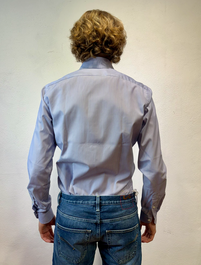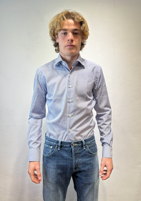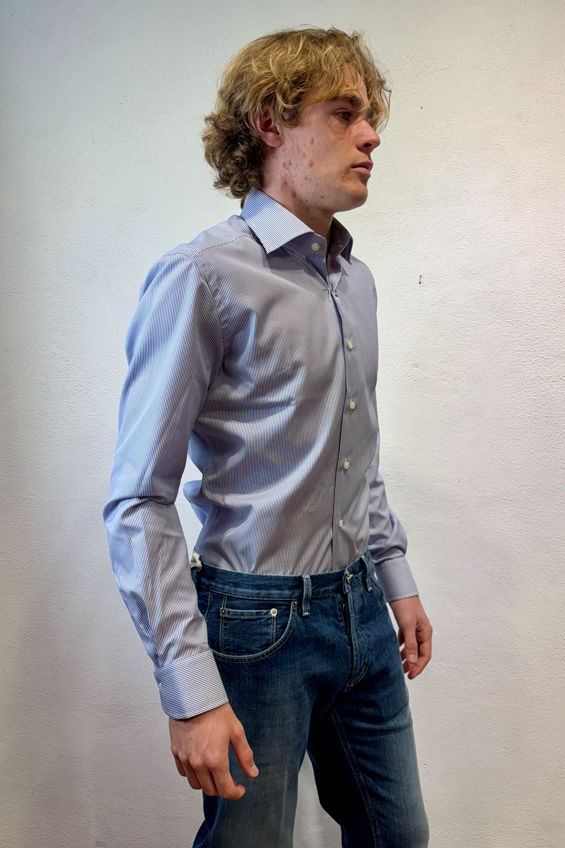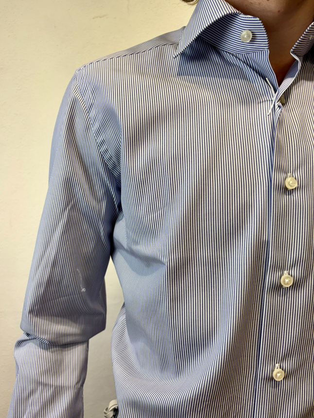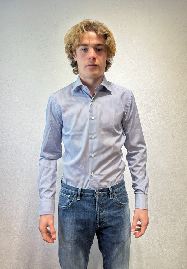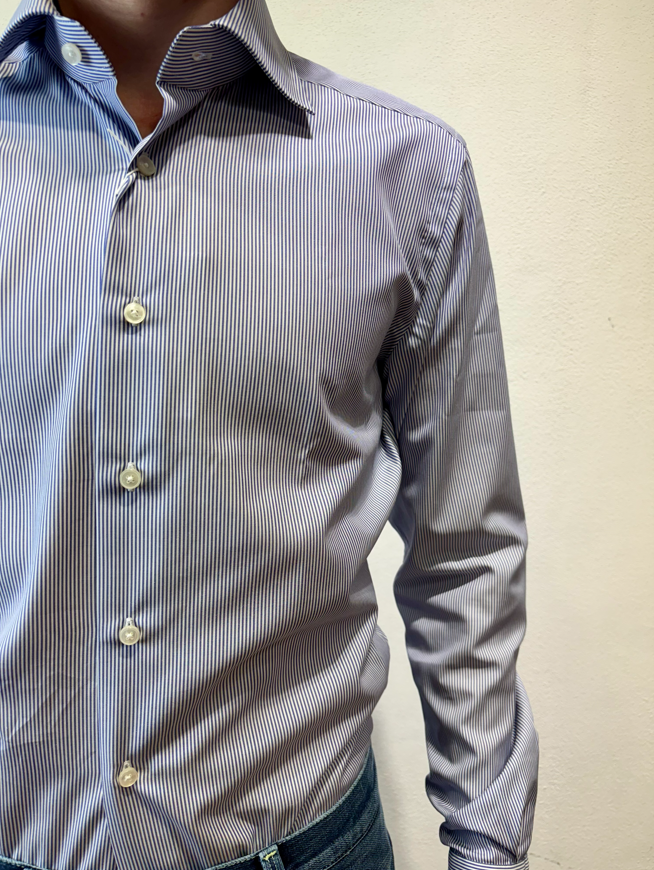 Xacus camicia microbastoncino blu Camicia con pinces, collo semi-francese 100% cotone WF536 11394 005 BASTONCINO BLU Il modello veste una taglia M /48 Altezza Modello 1,85 peso 72 kg Vestibilità regolare