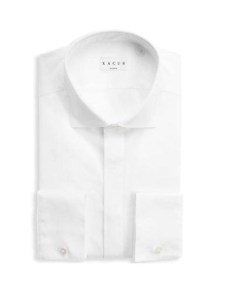 Xacus Camicia Collo francese Tinta Unita Popeline Bianco Descrizione modello Una camicia per le grandi occasioni con collo francese impunturato a filo, abbottonatura nascosta sul davanti. Il capo con polsini doppio uso, sono perfetti per essere utilizzati con o senza gemelli. Una camicia perfetta per essere protagonisti durante una cerimonia o una serata di gala. Il modello è alto 188 cm e porta la taglia 41. Descrizione materiale Popeline stretch in filato compact Il popeline stretch in filato compact rappresenta il massimo del comfort e della qualità in termini di resistenza. Con il suo 96% di cotone avrete una sensazione di totale naturalezza sulla vostra pelle, senza rinunciare al comfort tecnologico di questa fibra. Abbinato ad una vestibilità slim e tailor, questa camicia diventerà presto il vostro confortevole basico preferito. Composizione del tessuto: COTONE 96%/ELASTAN 4%