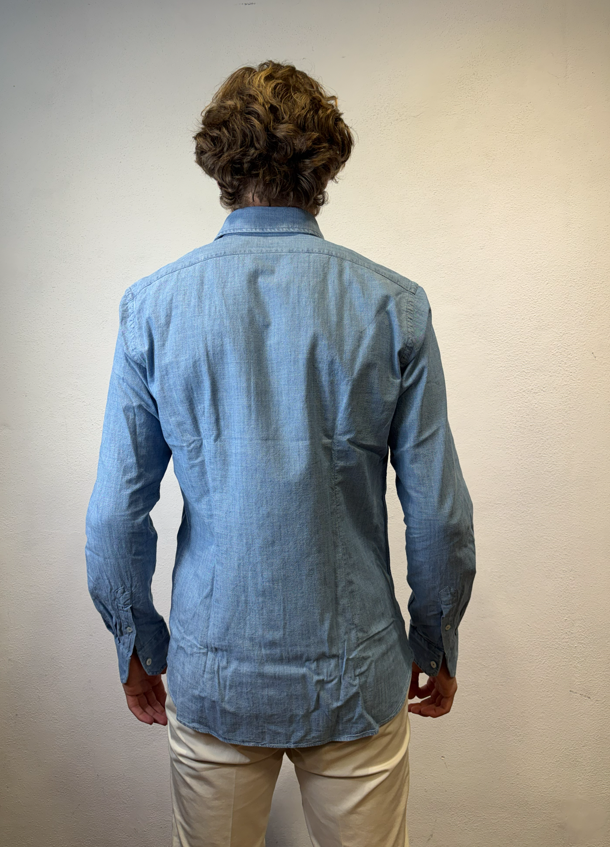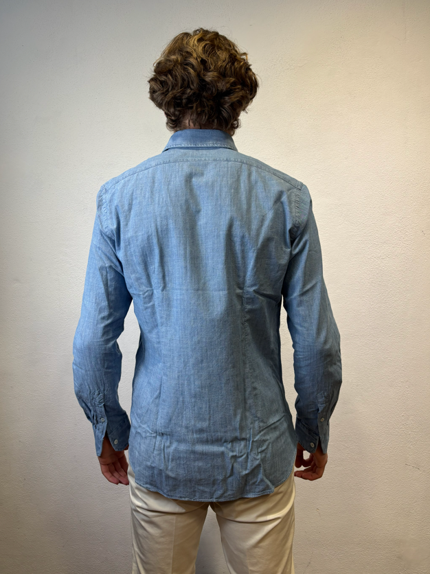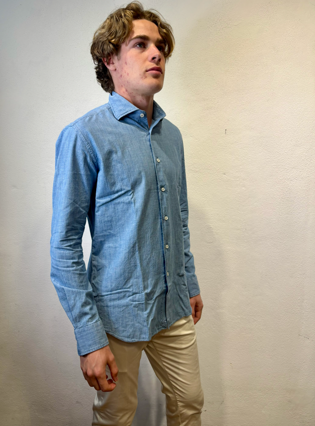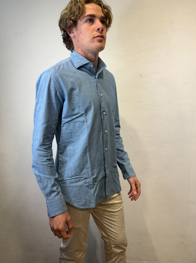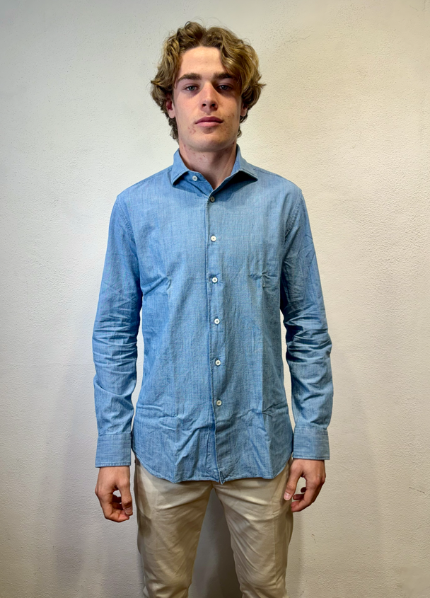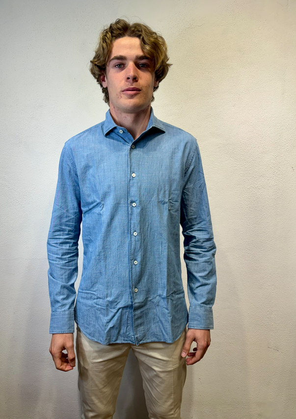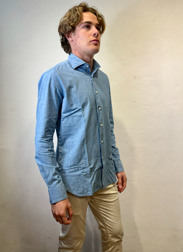 Xacus camicia in chambry Descrizione modello Camicia lavata in capo per un effetto sportivo e casual. Il mezzo francese ed i polsini rotondi, risultano essere morbidi e descostruiti. Dopo ogni lavaggio e stiro, risulteranno vivi con un sapore naturalmente vissuto. La vestibillità tailor fit wash risulta essere aggiornata nei volumi, asciutta nelle taglie piccole e confortevole in quelle piu’ alte. Cucita nella migliore tradizione sartoriale con 7 punti per centimetro, stecche estraibili, mosche sul fondo e gambo con filo di seta termosaldato per ogni bottone. 742 11298 001 CAMICIA CHAMBRY CIELO Il modello è alto 1,86 peso 72 kg veste una taglia 39 / media