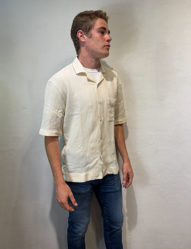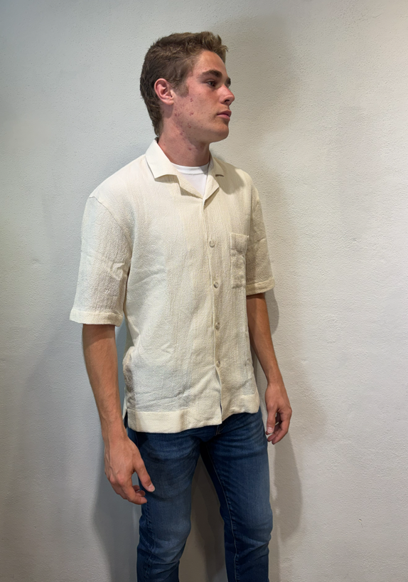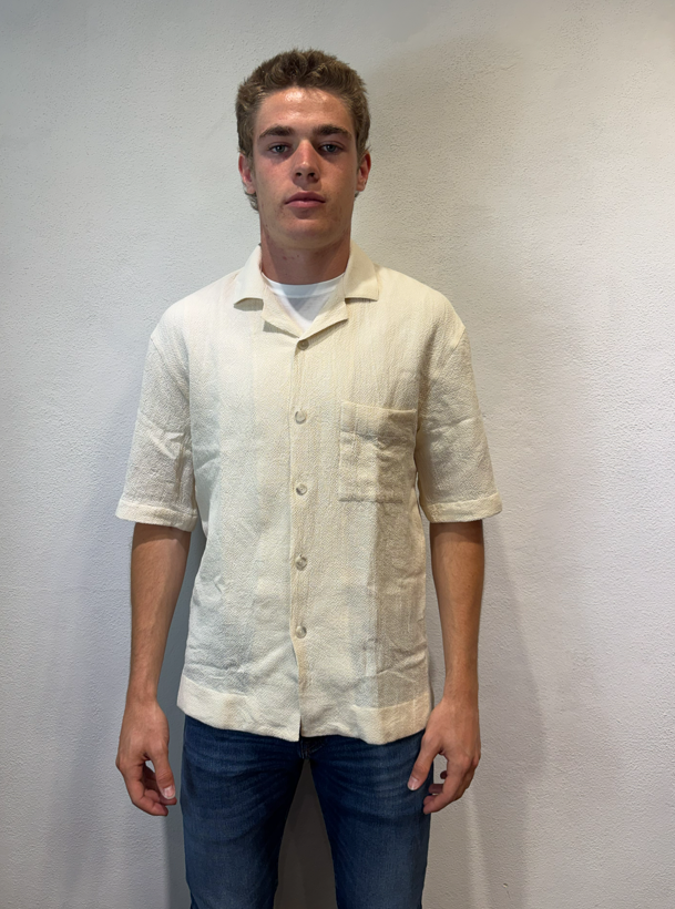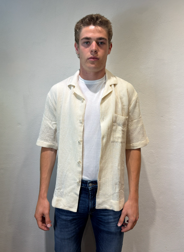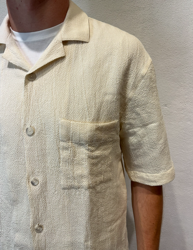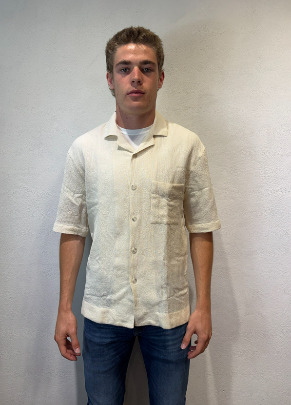 Xacus camicia mezza manica panna Camicia con taschino mezza manica Il modello veste una taglia M /48 Altezza Modello 1,85 peso 72 kg 106 21446 001 CAMICIA M/M LINO PANNA