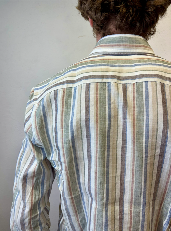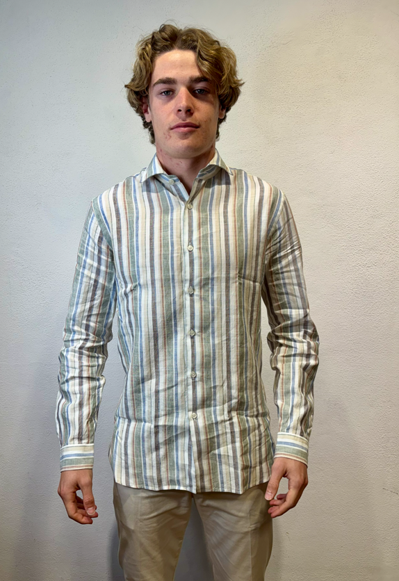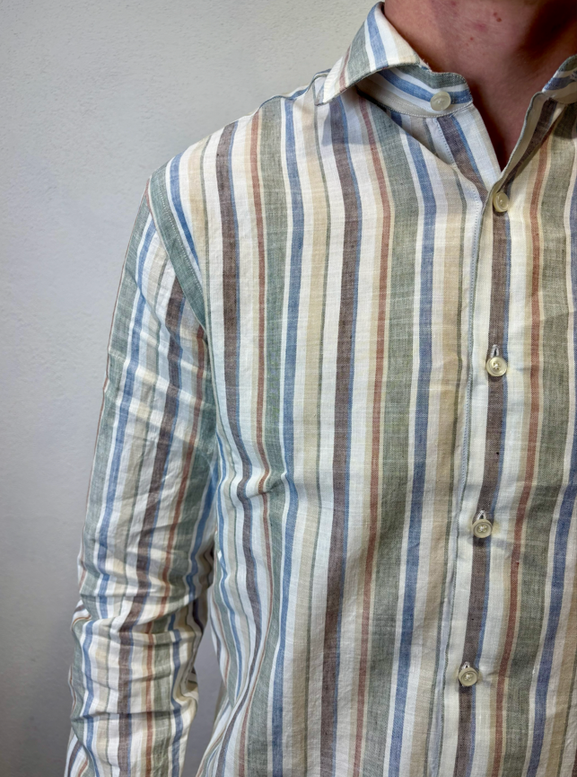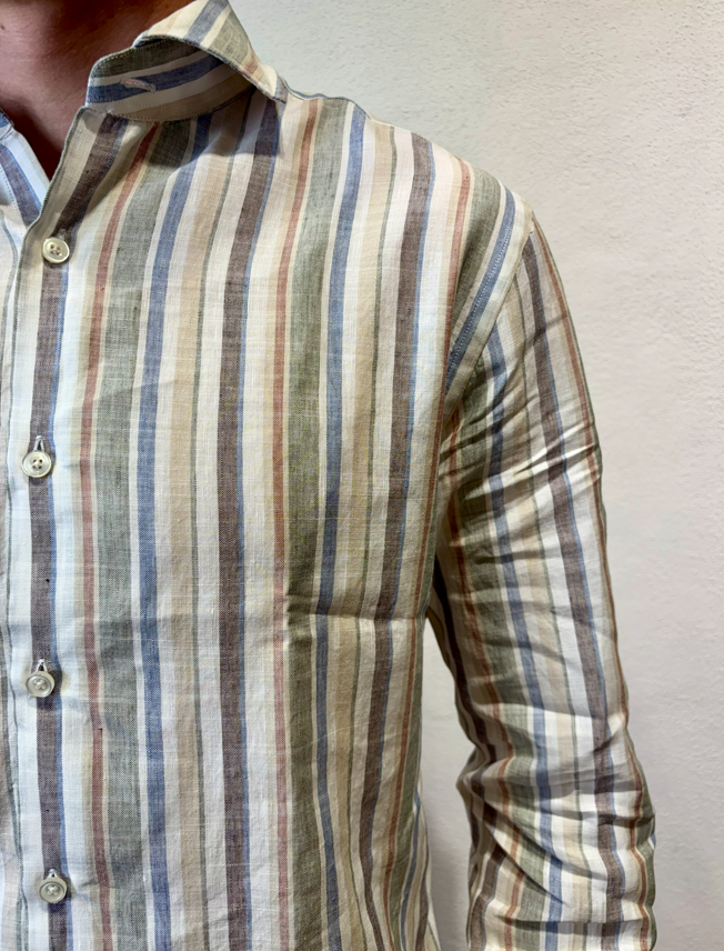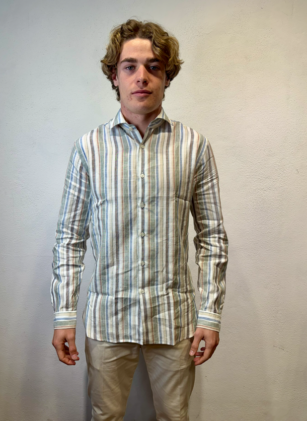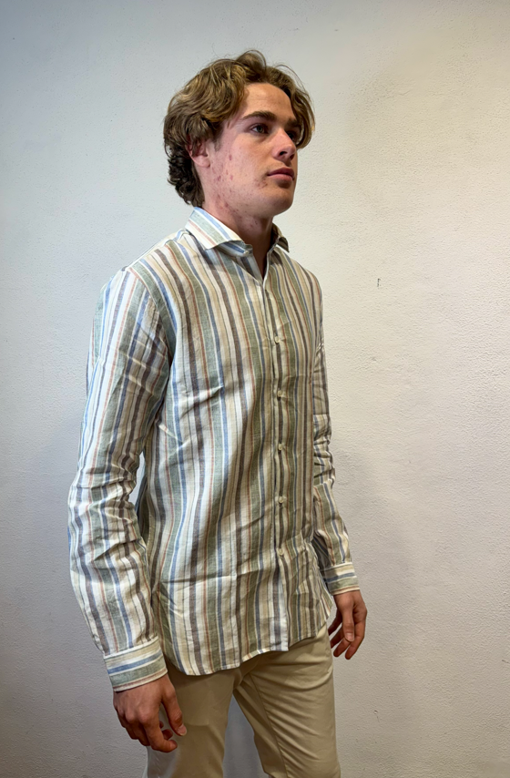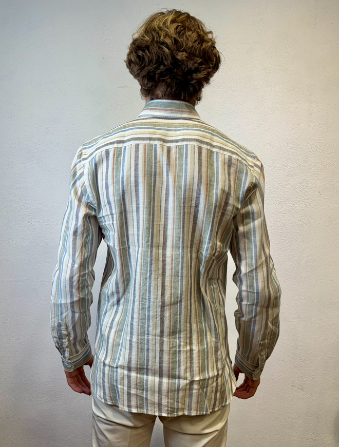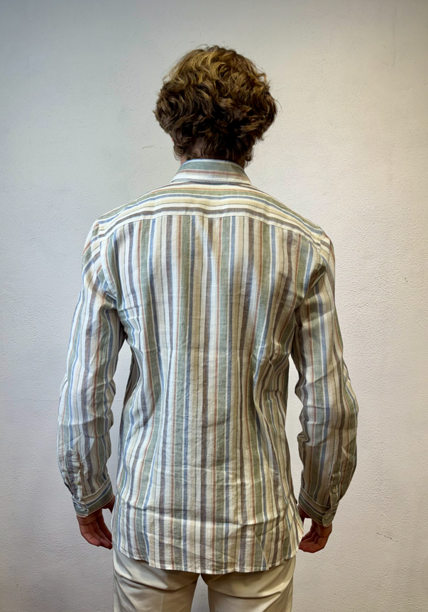 Xacus camicia misto lino multi riga Camicia sartoriale in misto lino e cotone Colore multicolor Composizione 51% lino 49% cotone 422 21214 001 CAMICIA RIGA MULTICOLOR Il modello veste una taglia 40 di collo M /48 Italiano Il modello è alto 1,85 peso 72 kg