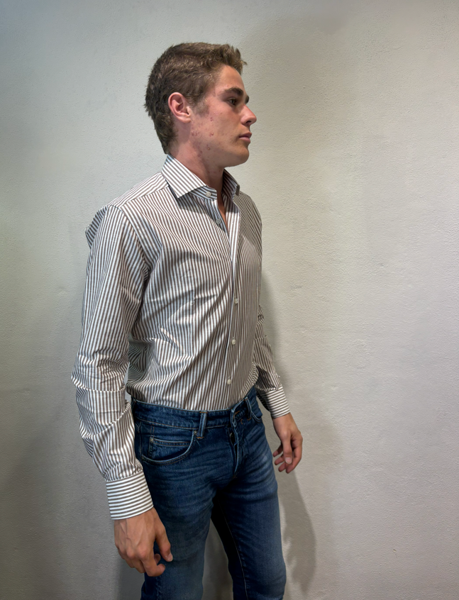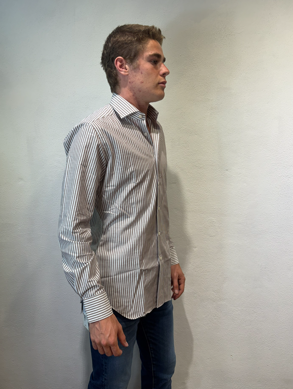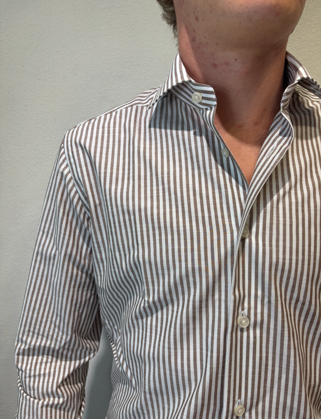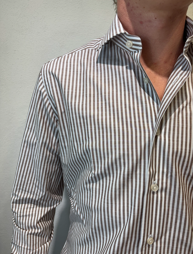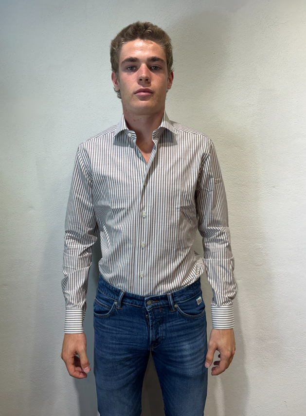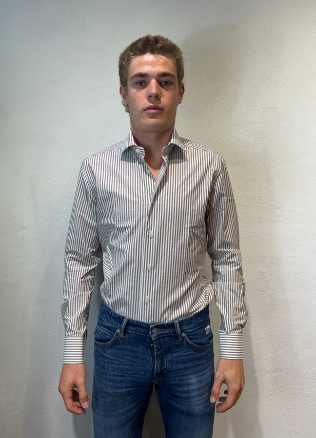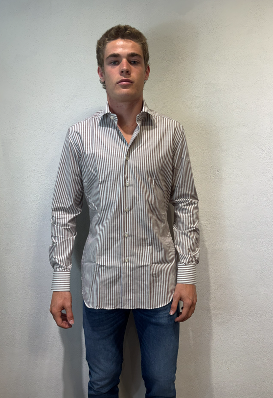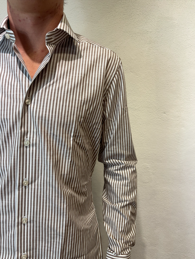 Xacus camicia macro bastoncino in cotone moro Camicia sartoriale in cotone gessato 100% cotone Il modello veste una taglia 39/ M /48 Altezza Modello 1,85 peso 72 kg