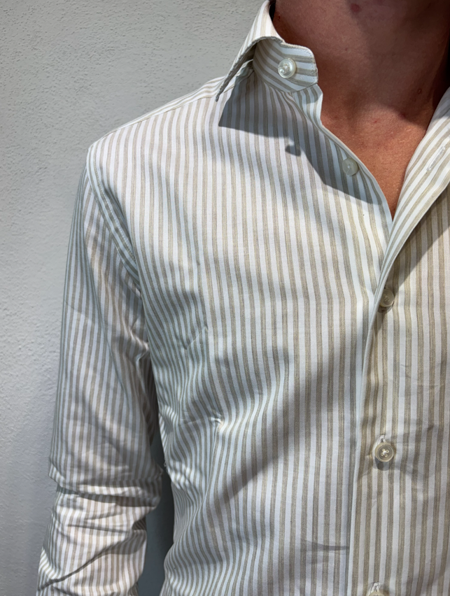 Xacus camicia macro bastoncino in cotone tortora